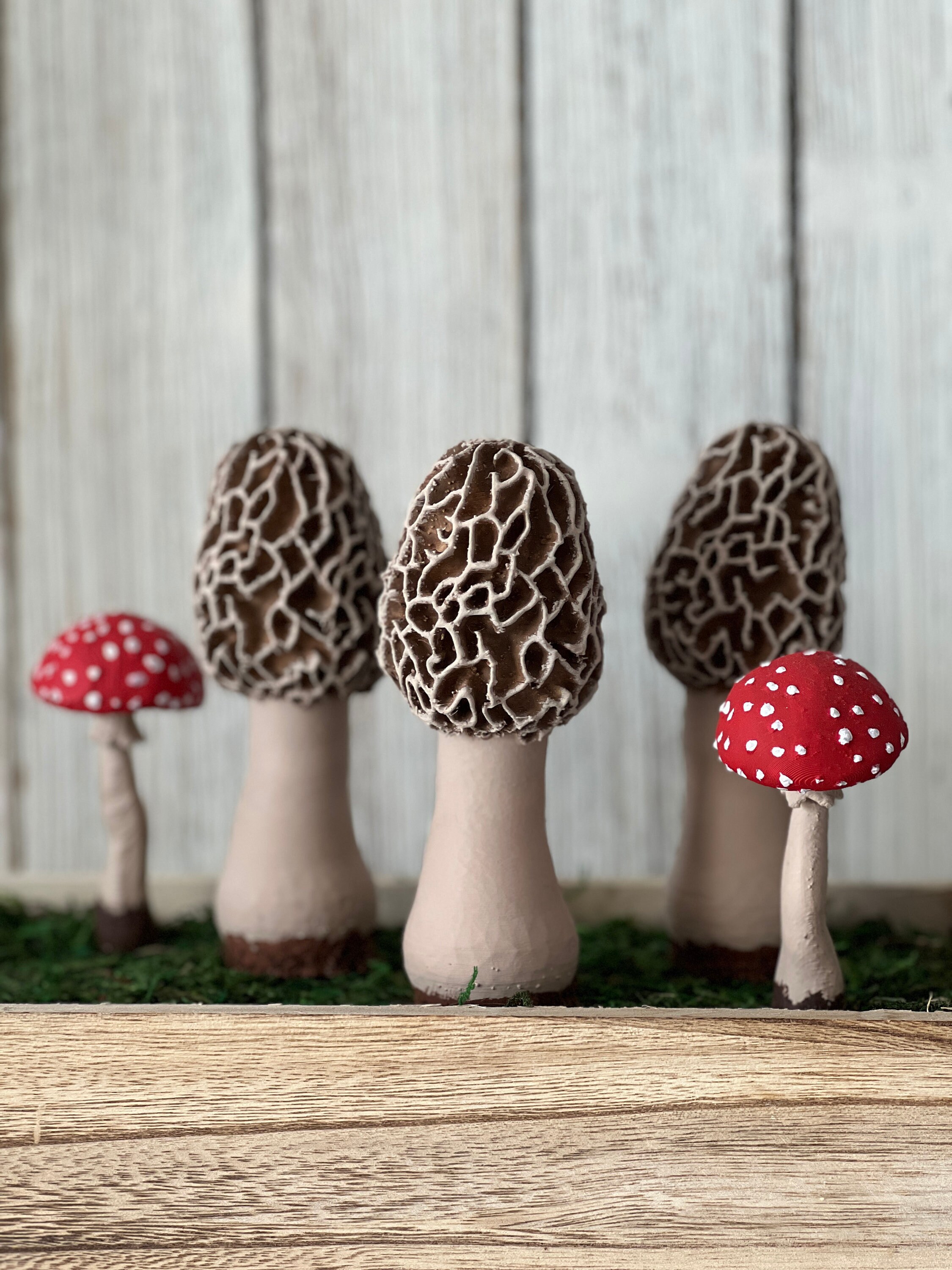 Extra magical mushrooms for your fairy garden, vegetable garden, houseplants or just to brighten up a little corner of your kitchen. These are the ultimate in cottagecore and fairycore vibes. The hidden gold of the spring forests, morel mushrooms. A delicacy. Ours are just fun and decorative, but still a treasure.