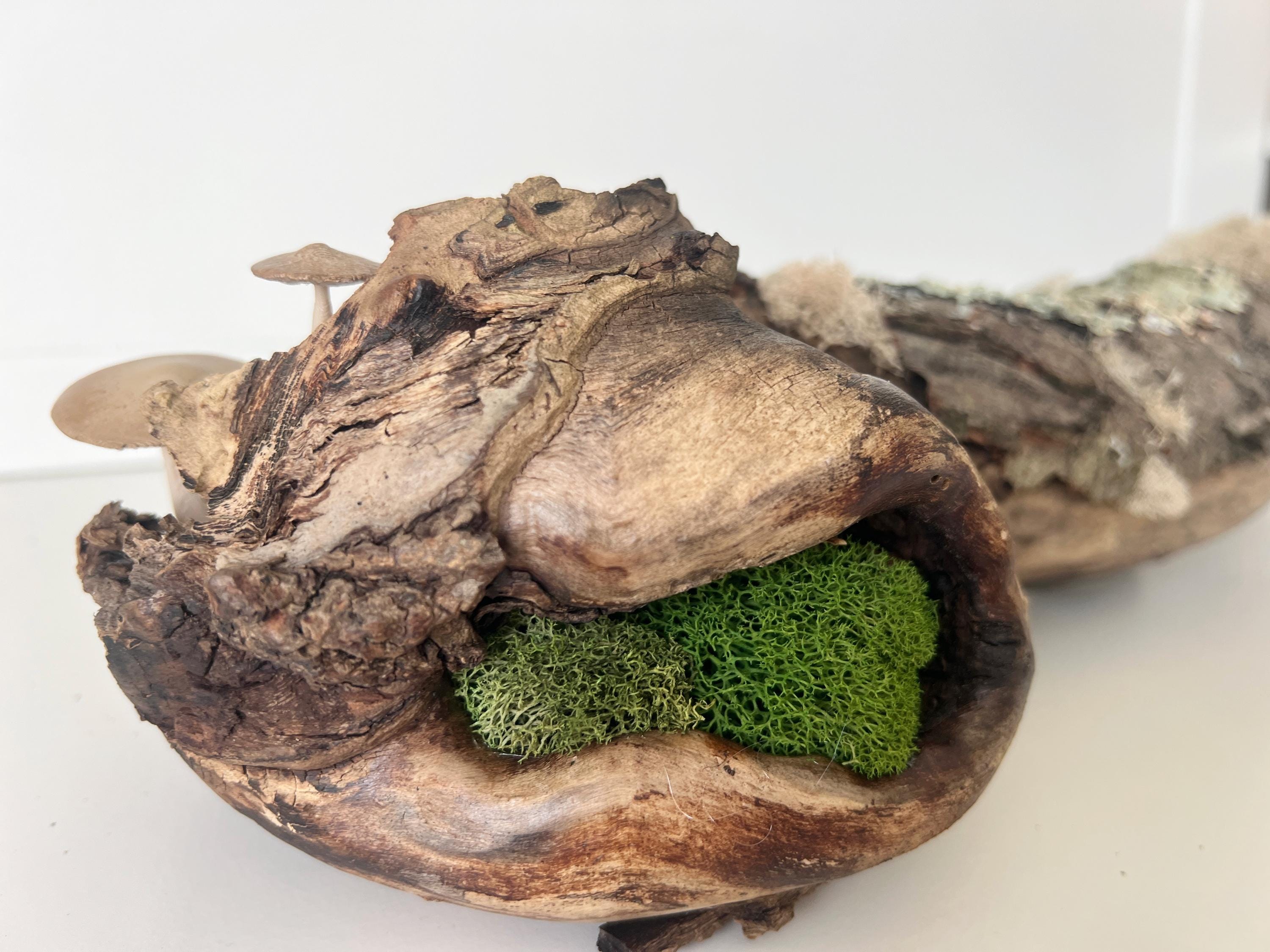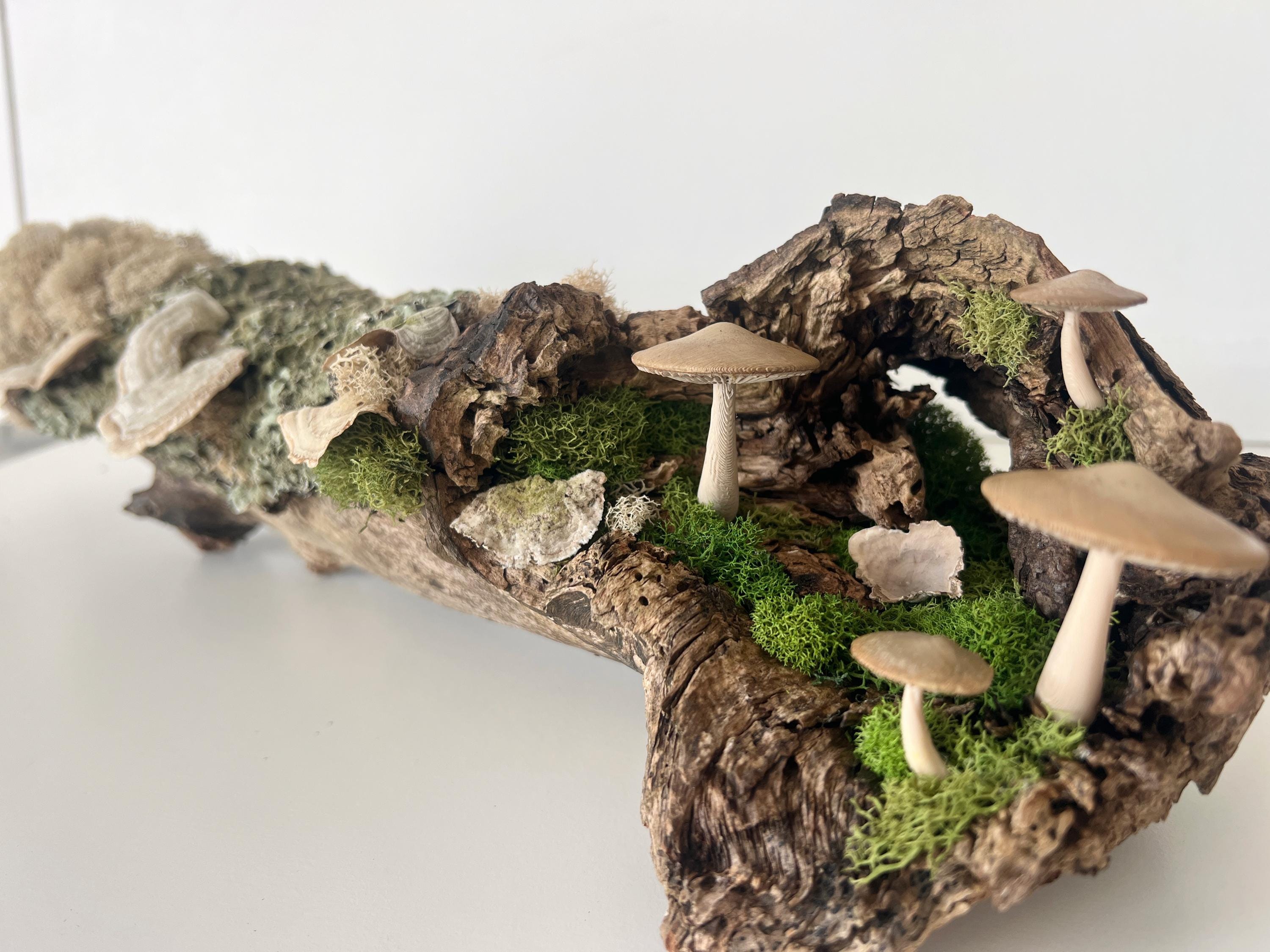 Mushrooms are 3D printed using eco-friendly, plant based, biodegradable PLA. Moss is preserved to stay green and beautiful with no maintenance.