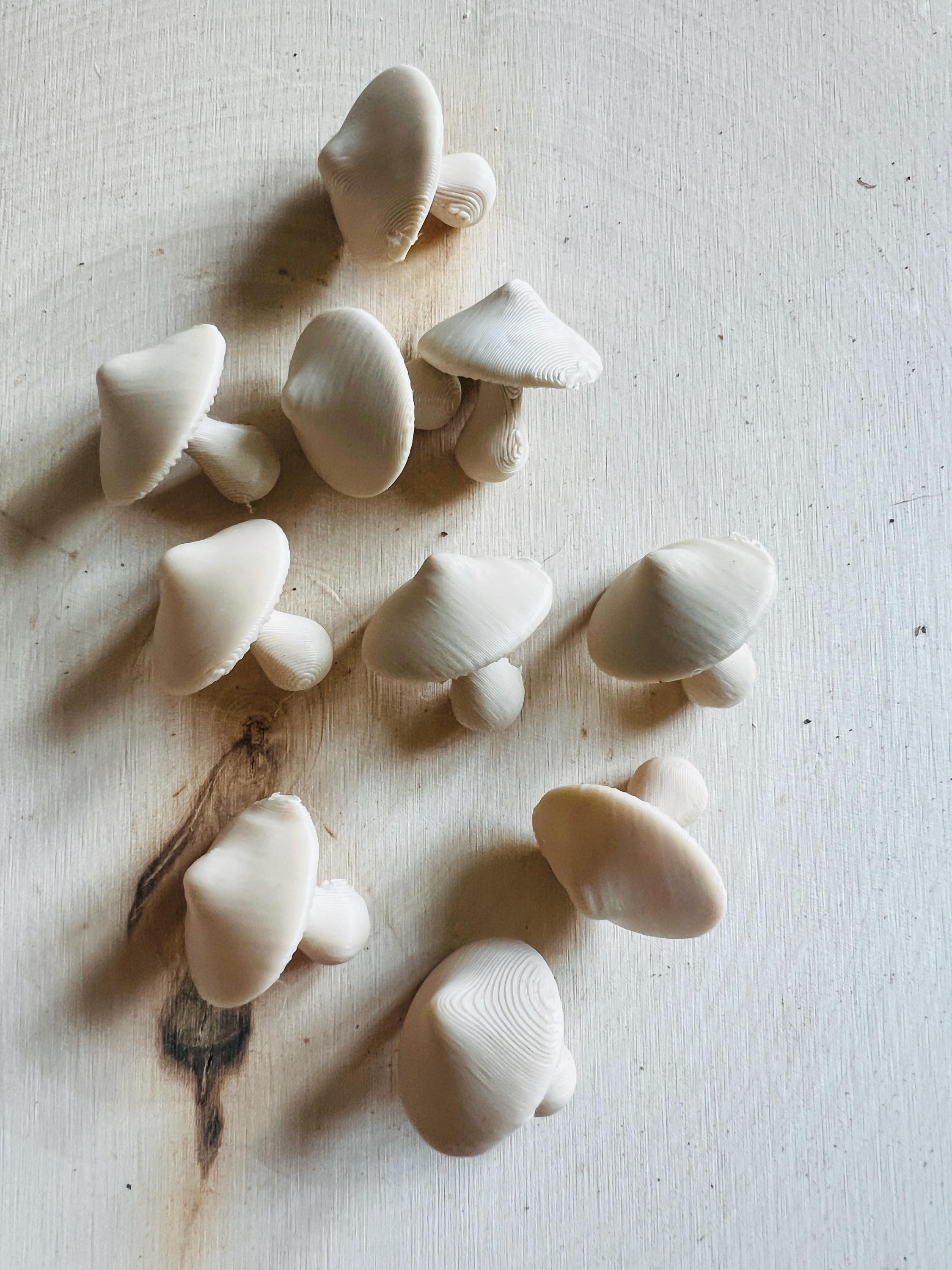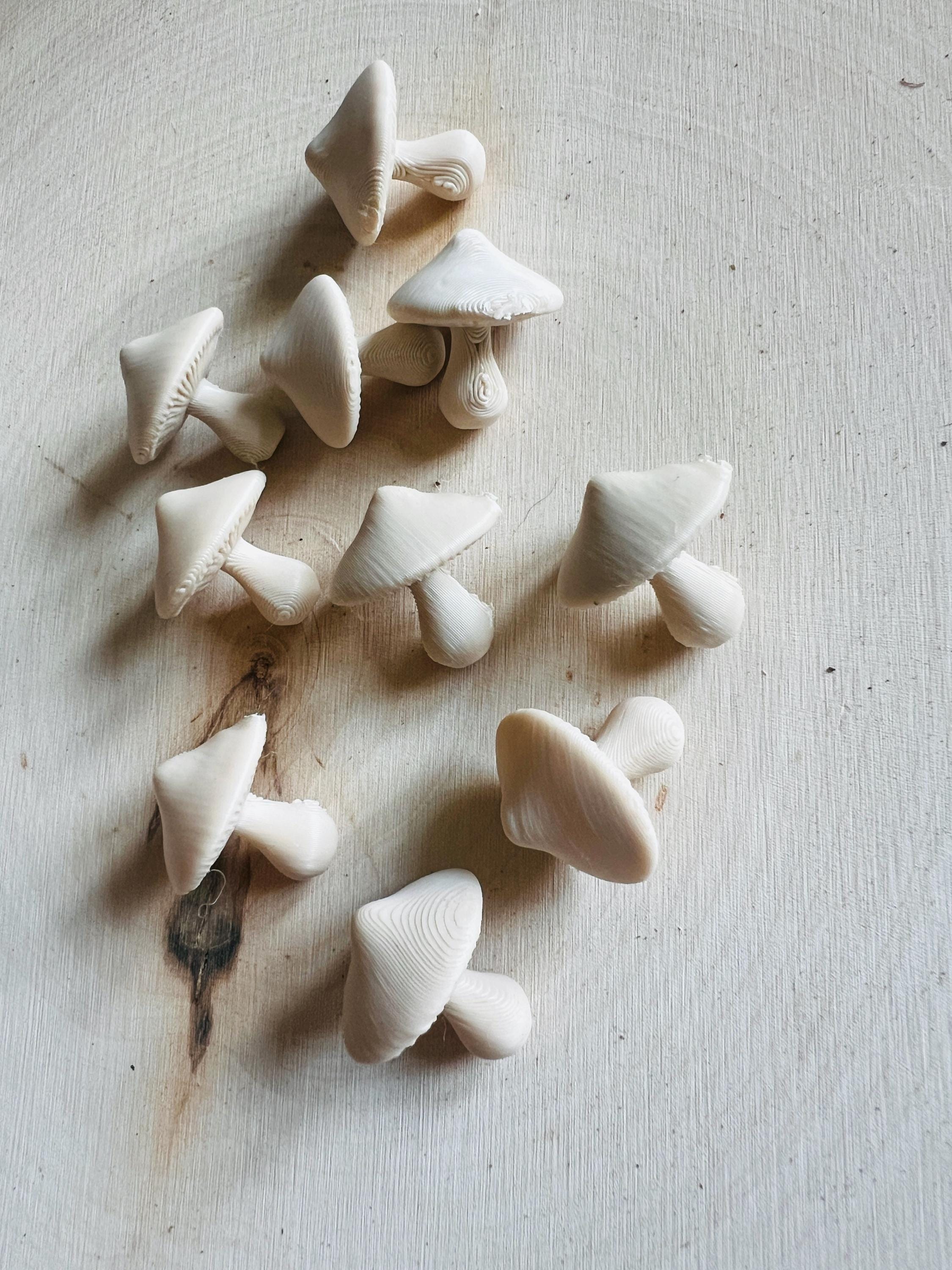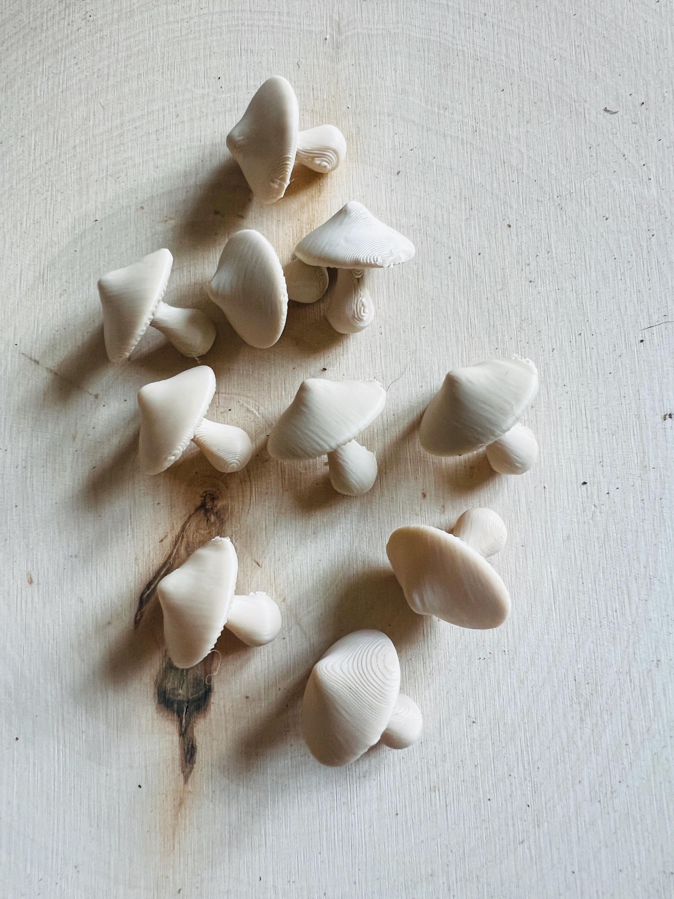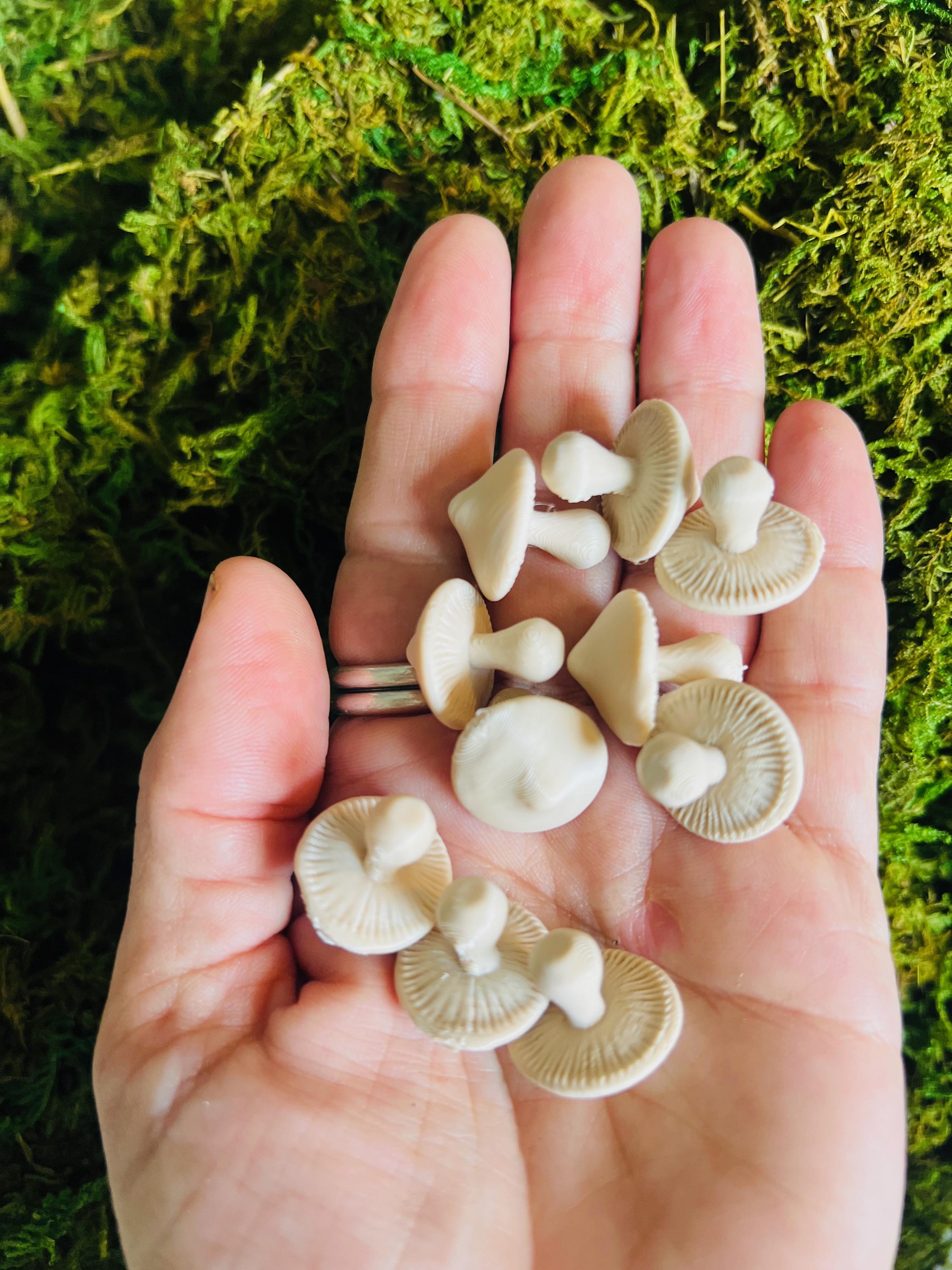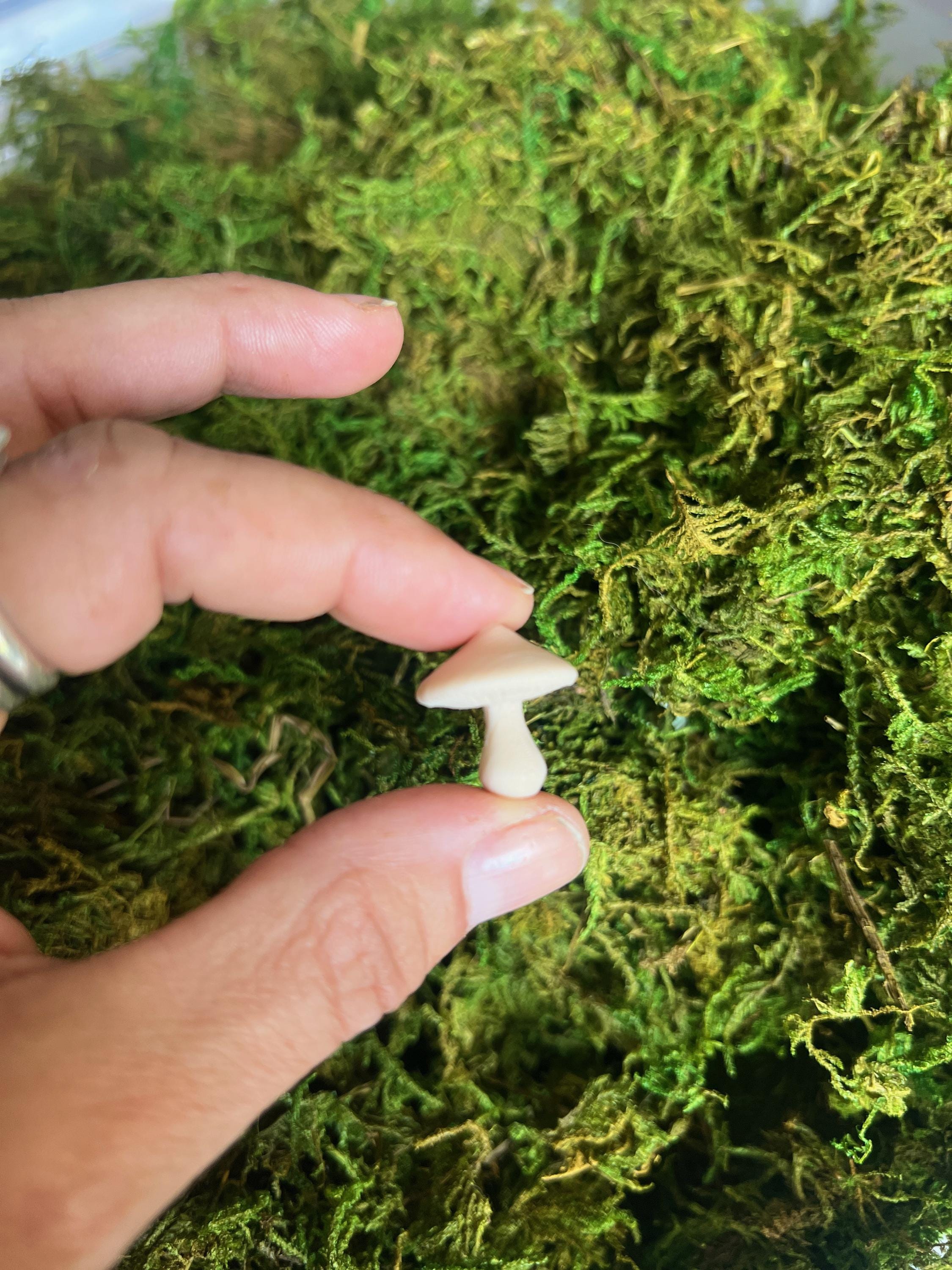 One set of 10 tiny mushrooms, unpainted, for your craft and terrarium projects. Each mushroom measures just shy of 1".