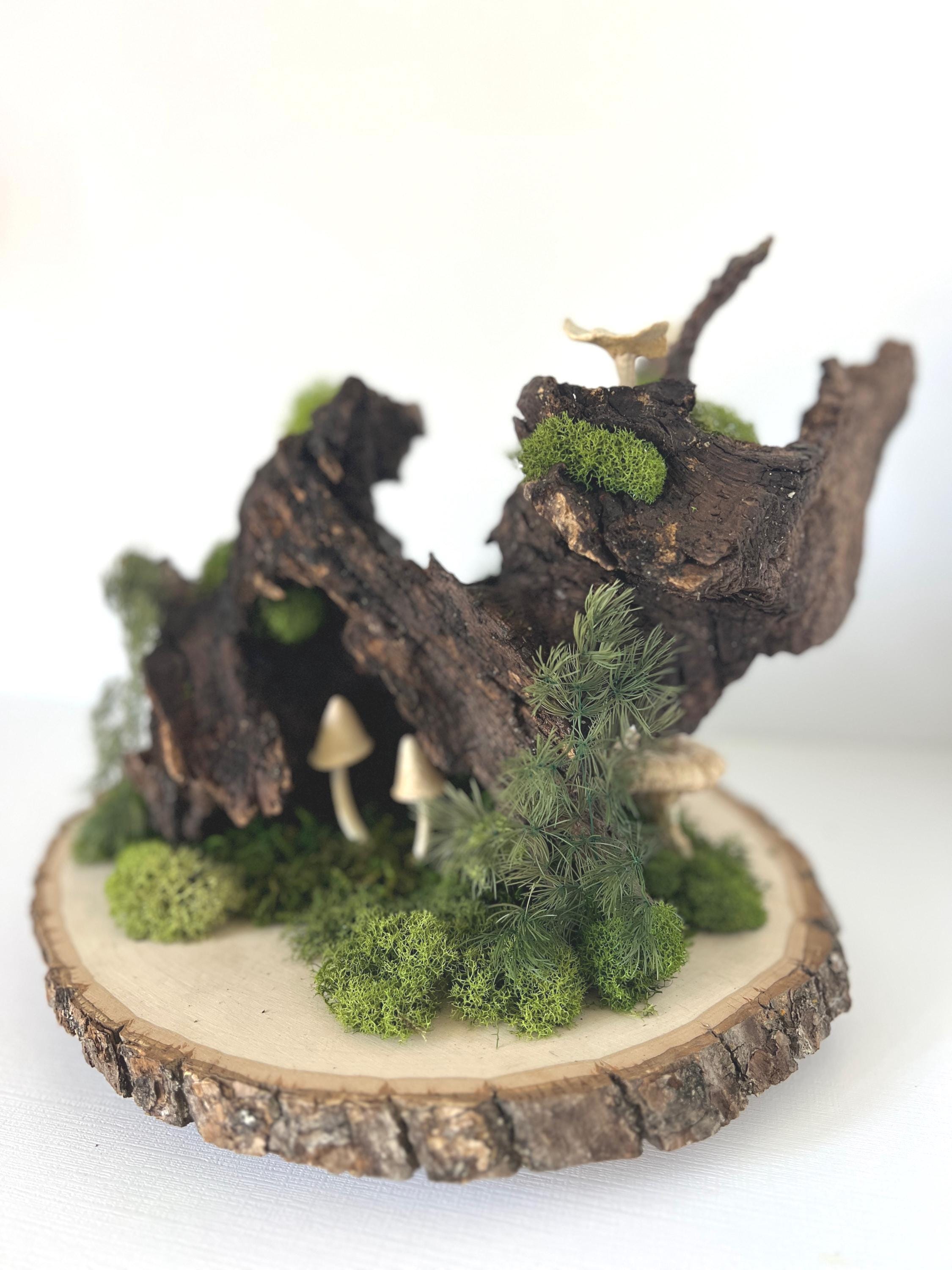Mushrooms are 3D printed using eco-friendly, plant based, biodegradable PLA. Moss is preserved to stay green and beautiful with no maintenance.