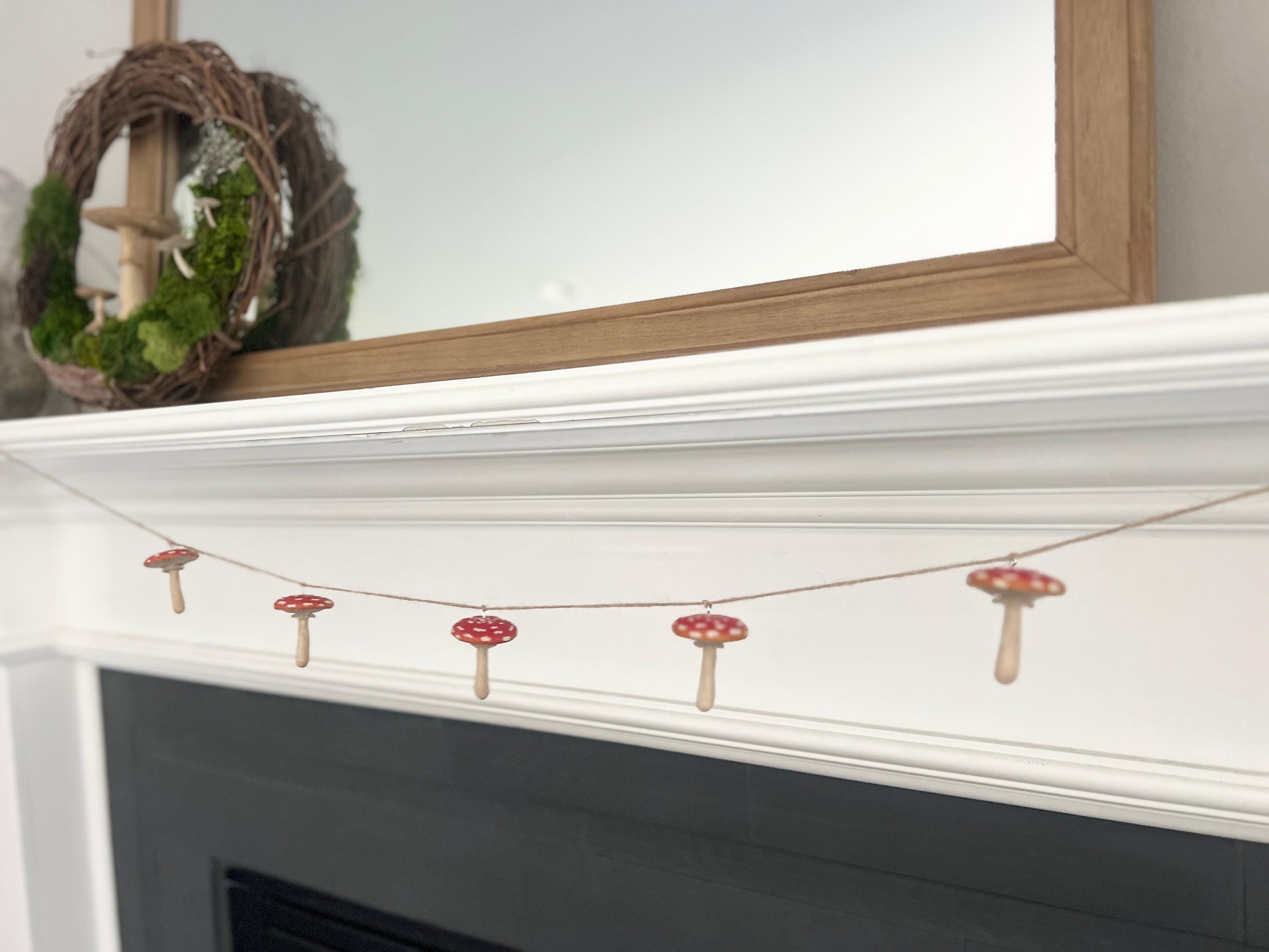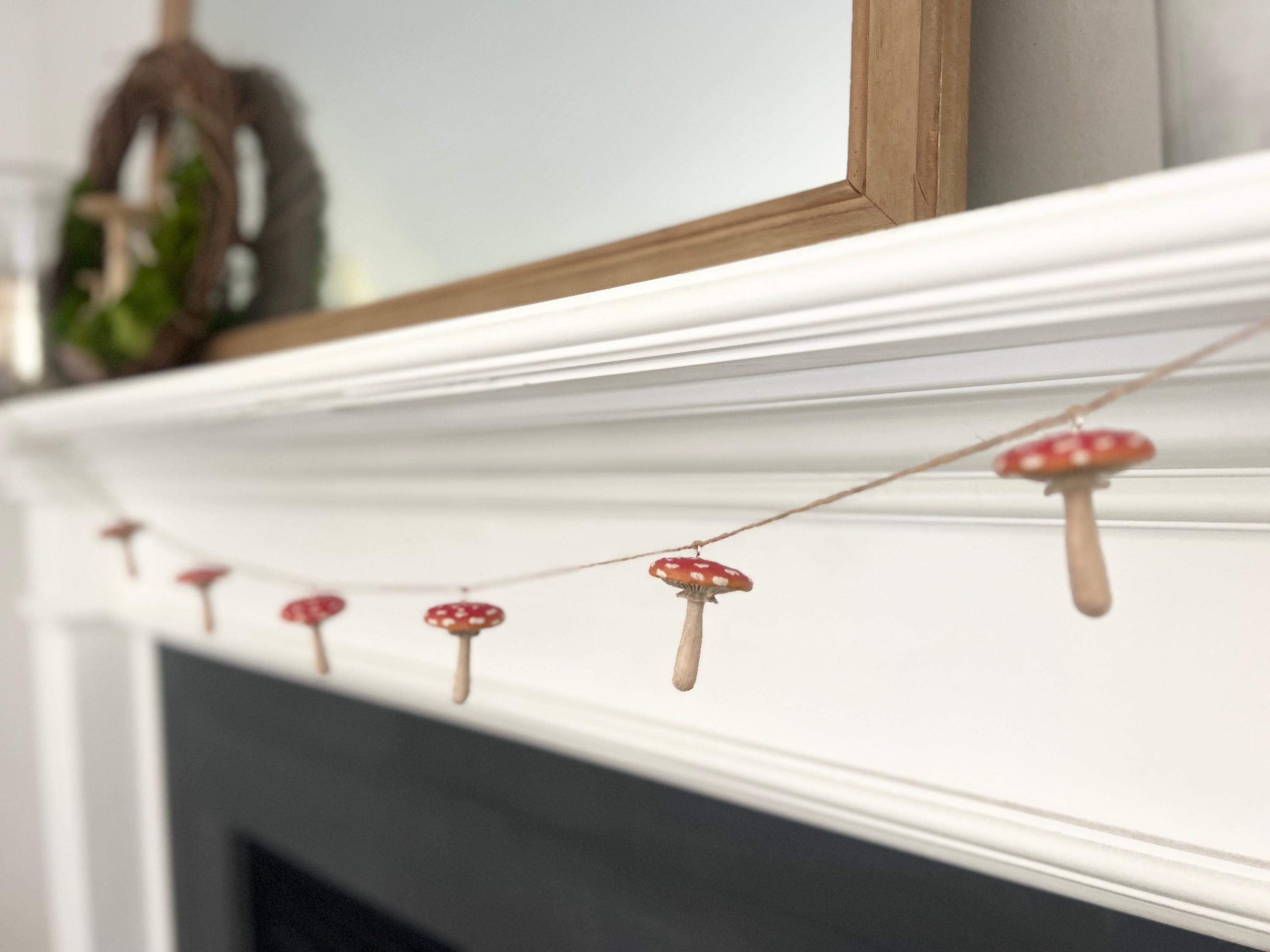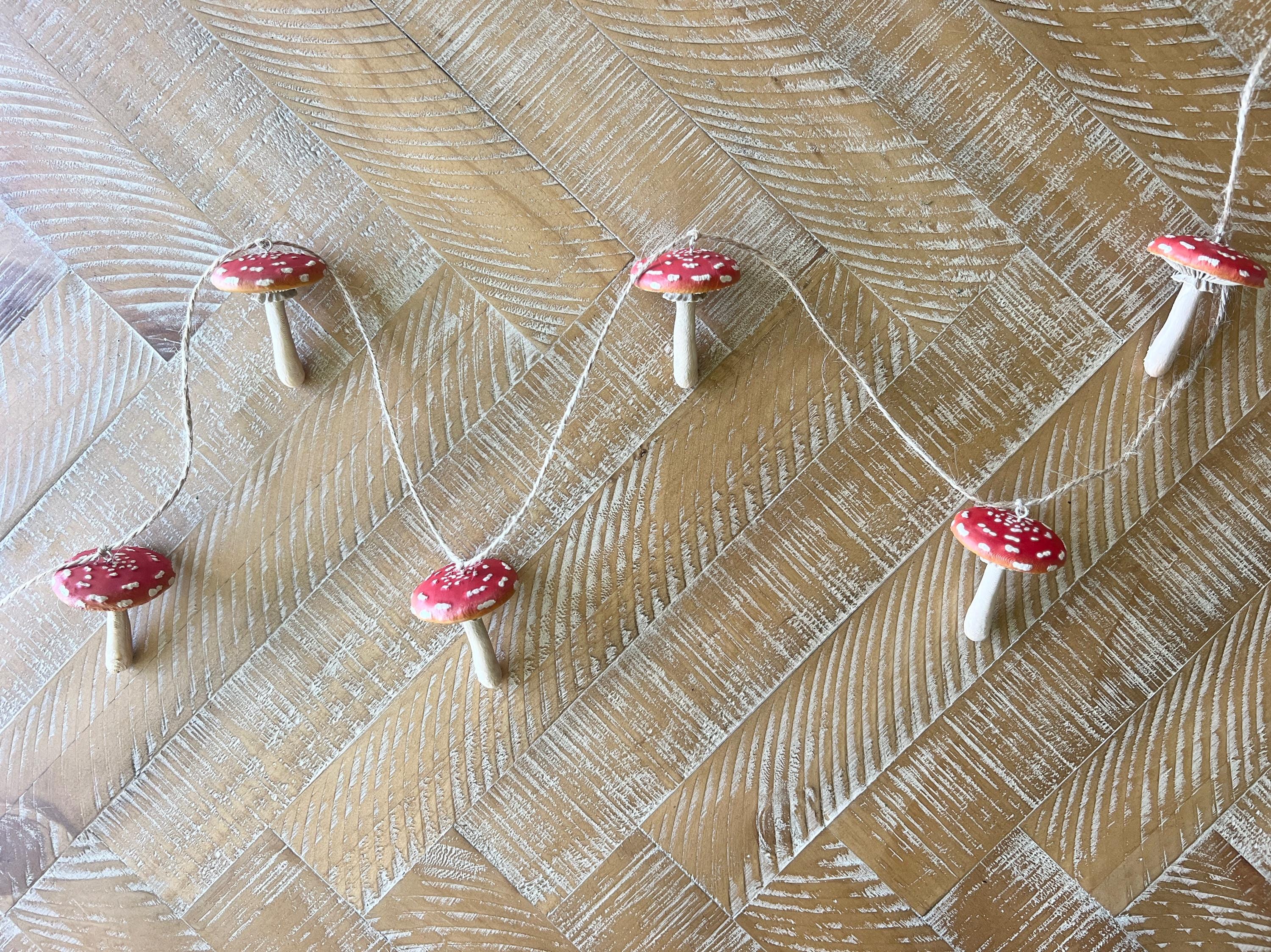 Sweet little mushroom garland for woodland themed parties, nursery decor, or just a fun little nature vibe in your space. The mushrooms are sealed against the weather so this can be used inside or out. The twine will age over time, as it is a natural fiber, so being in a protected area outside is recommended.