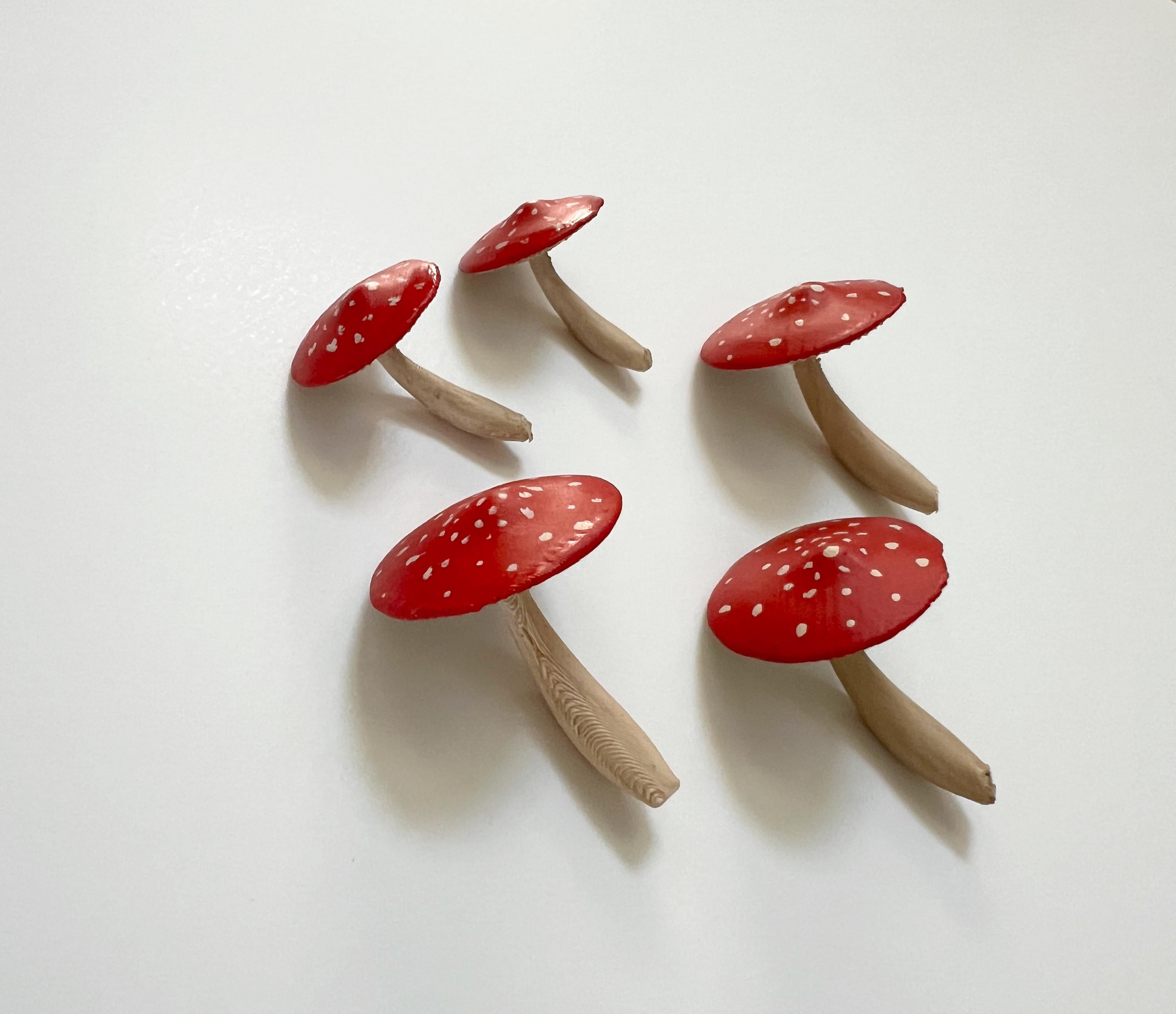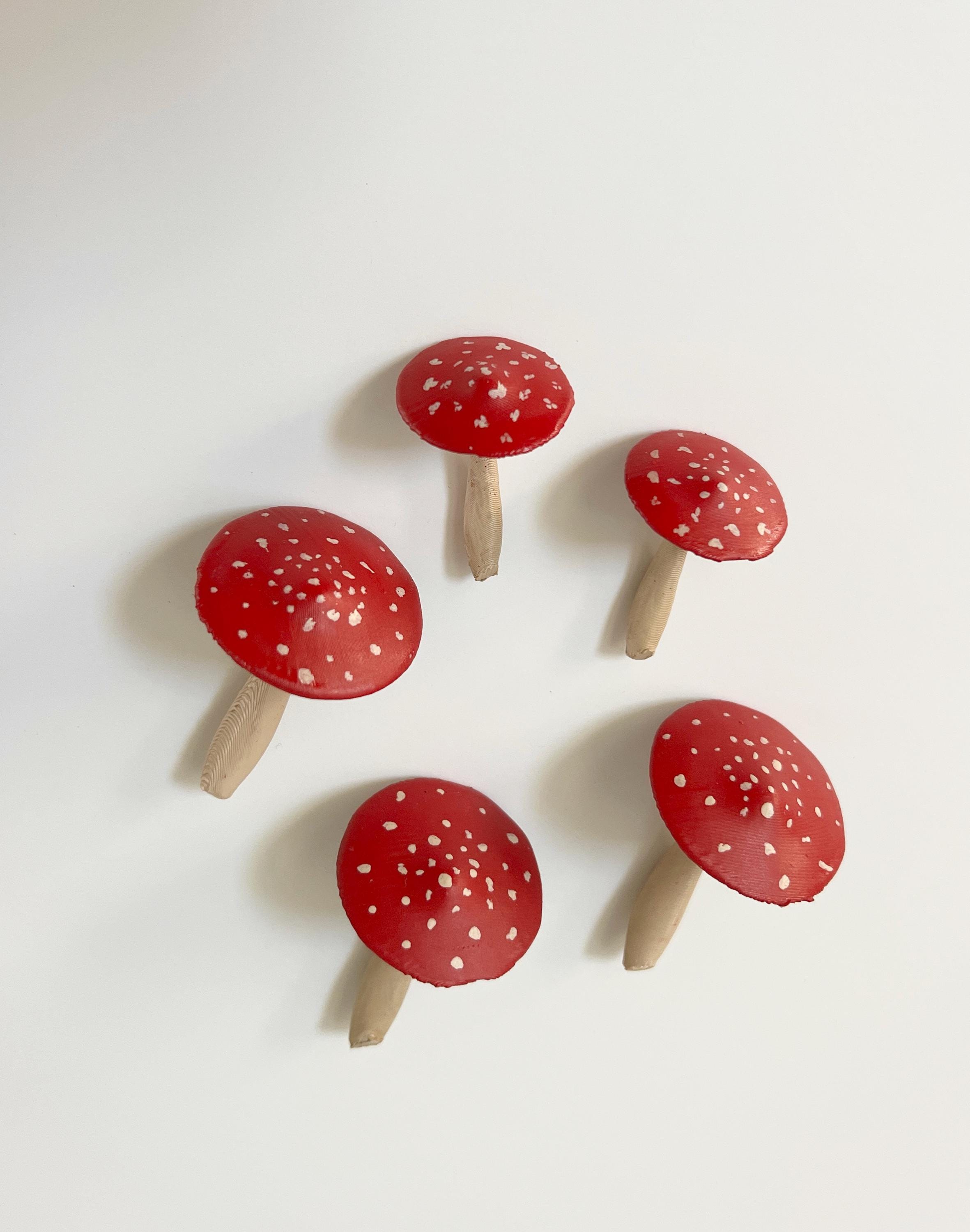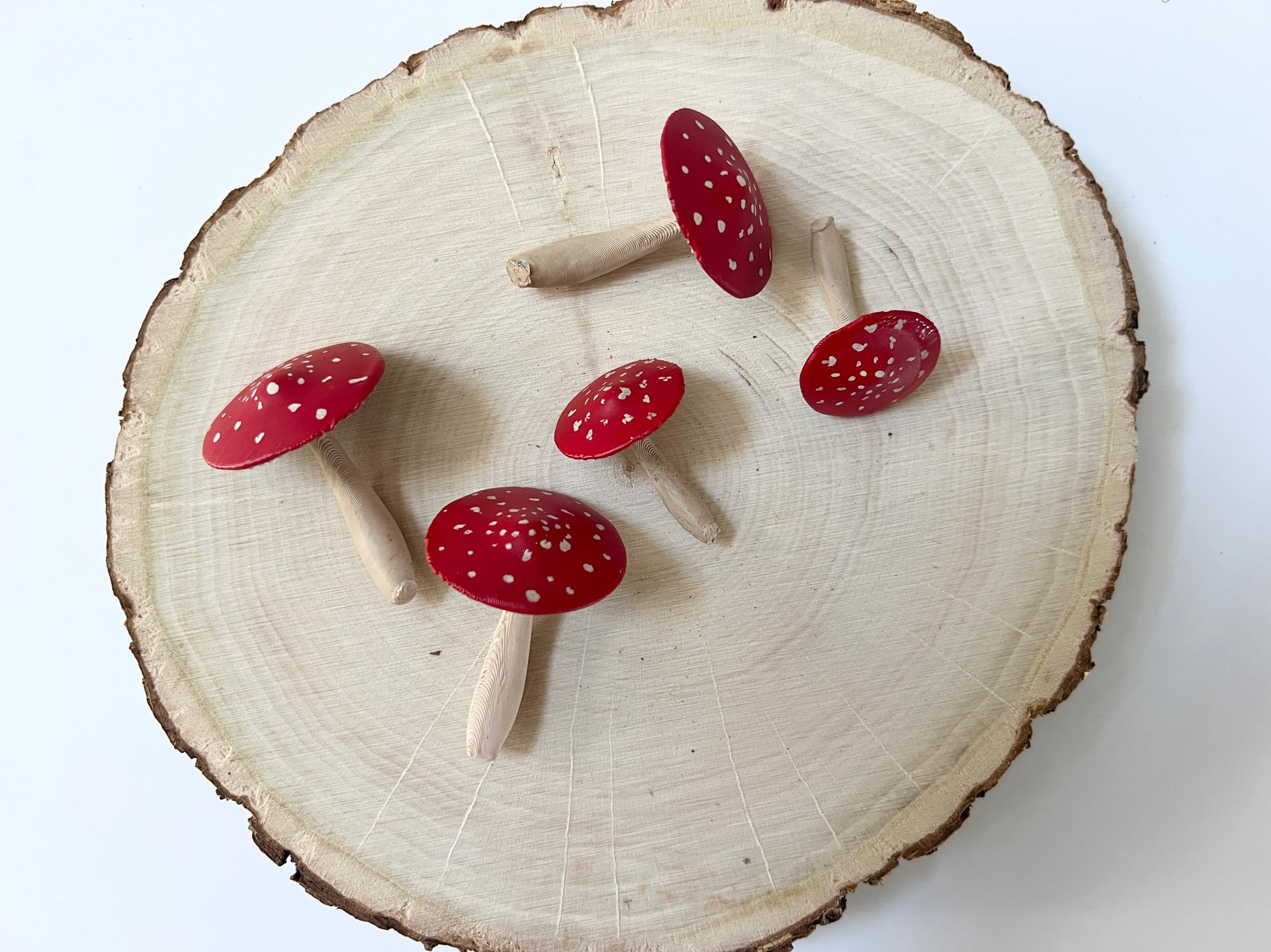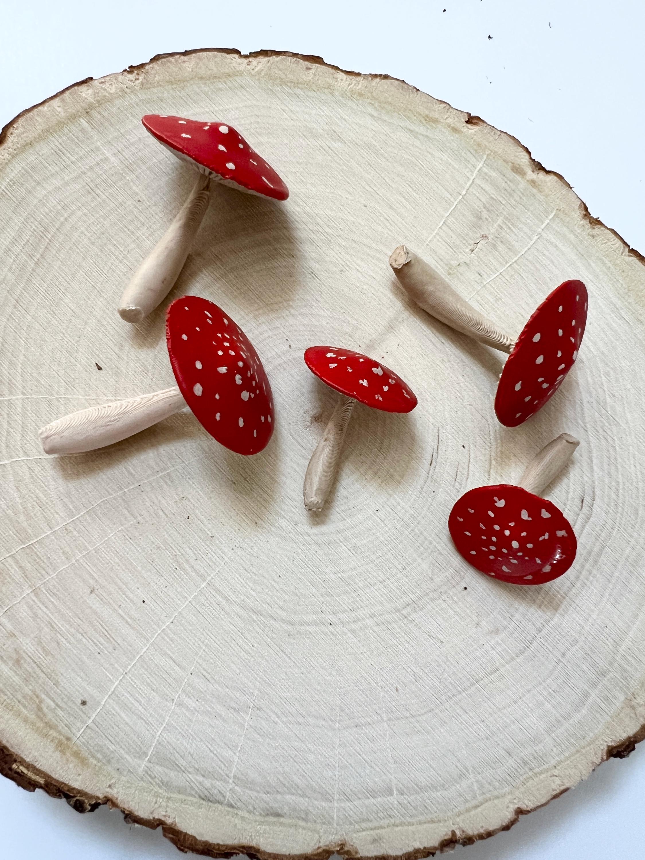 One set of 5 hand-painted mushrooms to use for decor, crafts, terrariums, gift toppers, cake toppers and more!