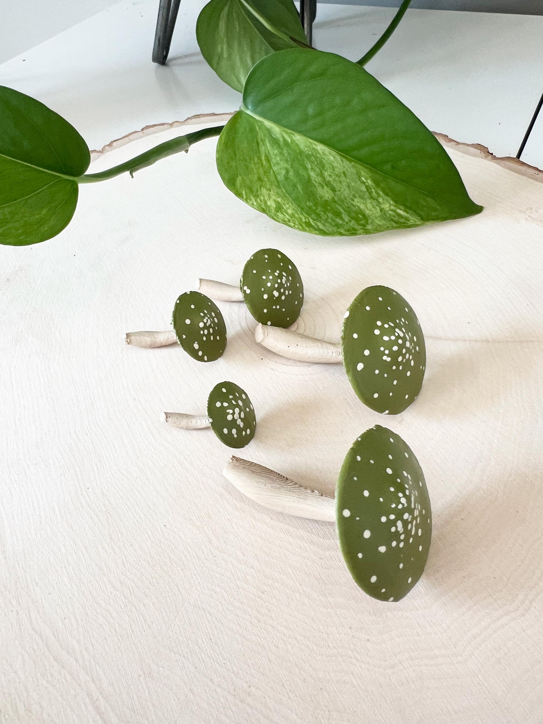 One set of 5 hand-painted mushrooms to use for decor, crafts, terrariums, gift toppers, cake toppers and more!