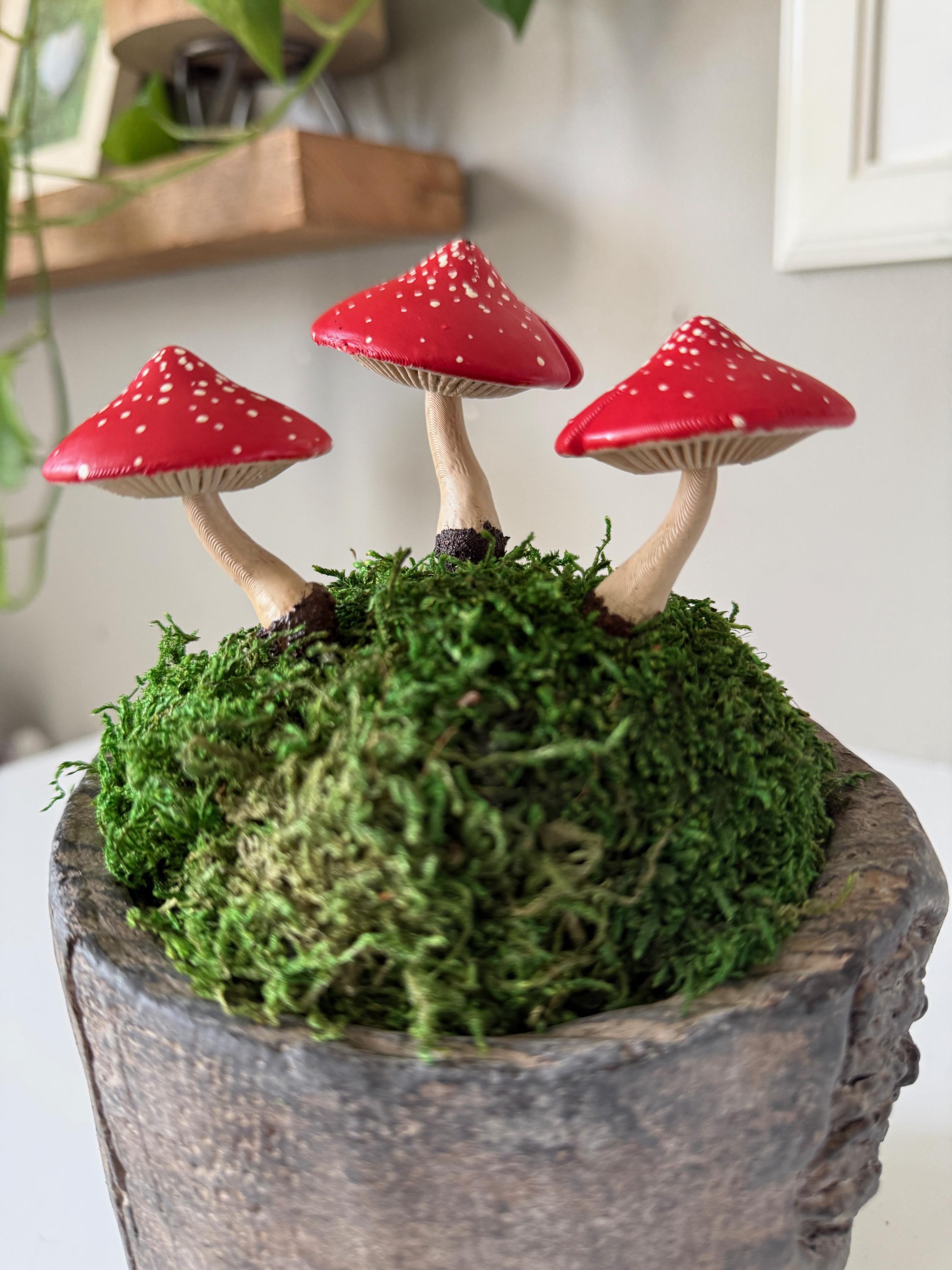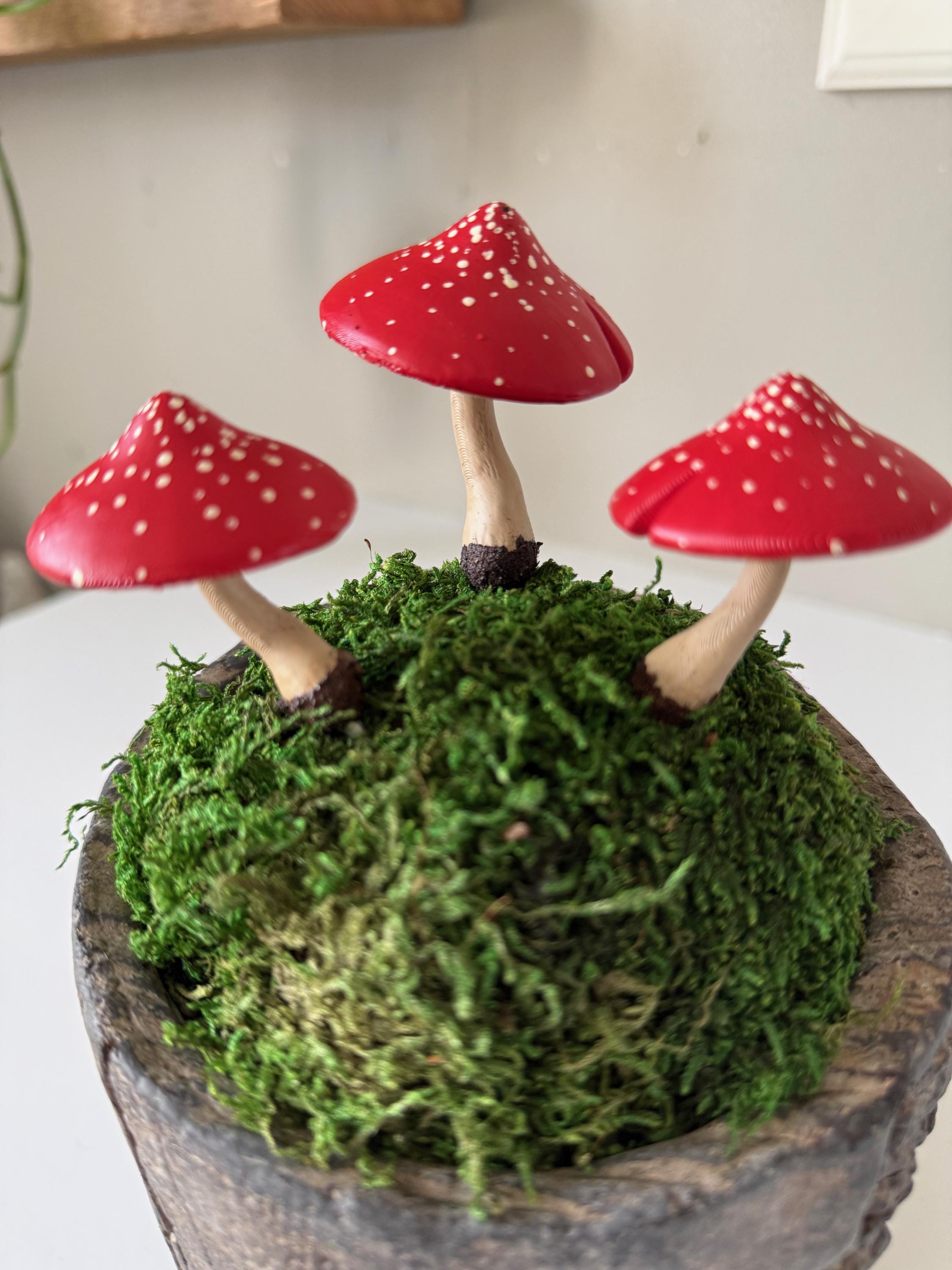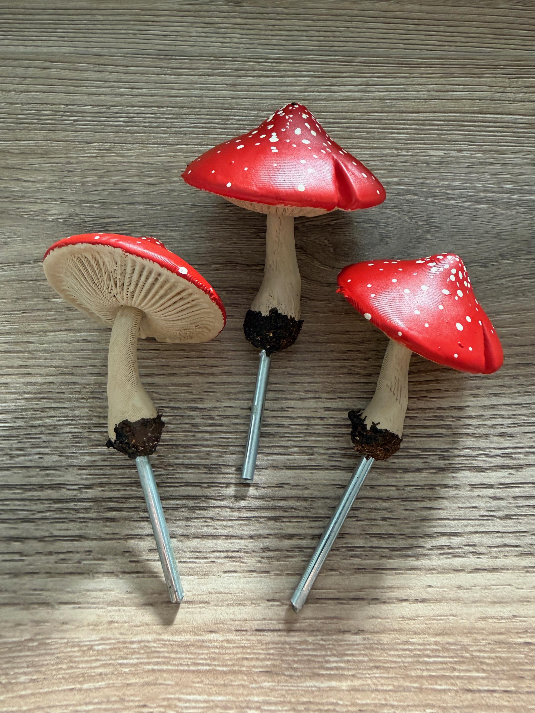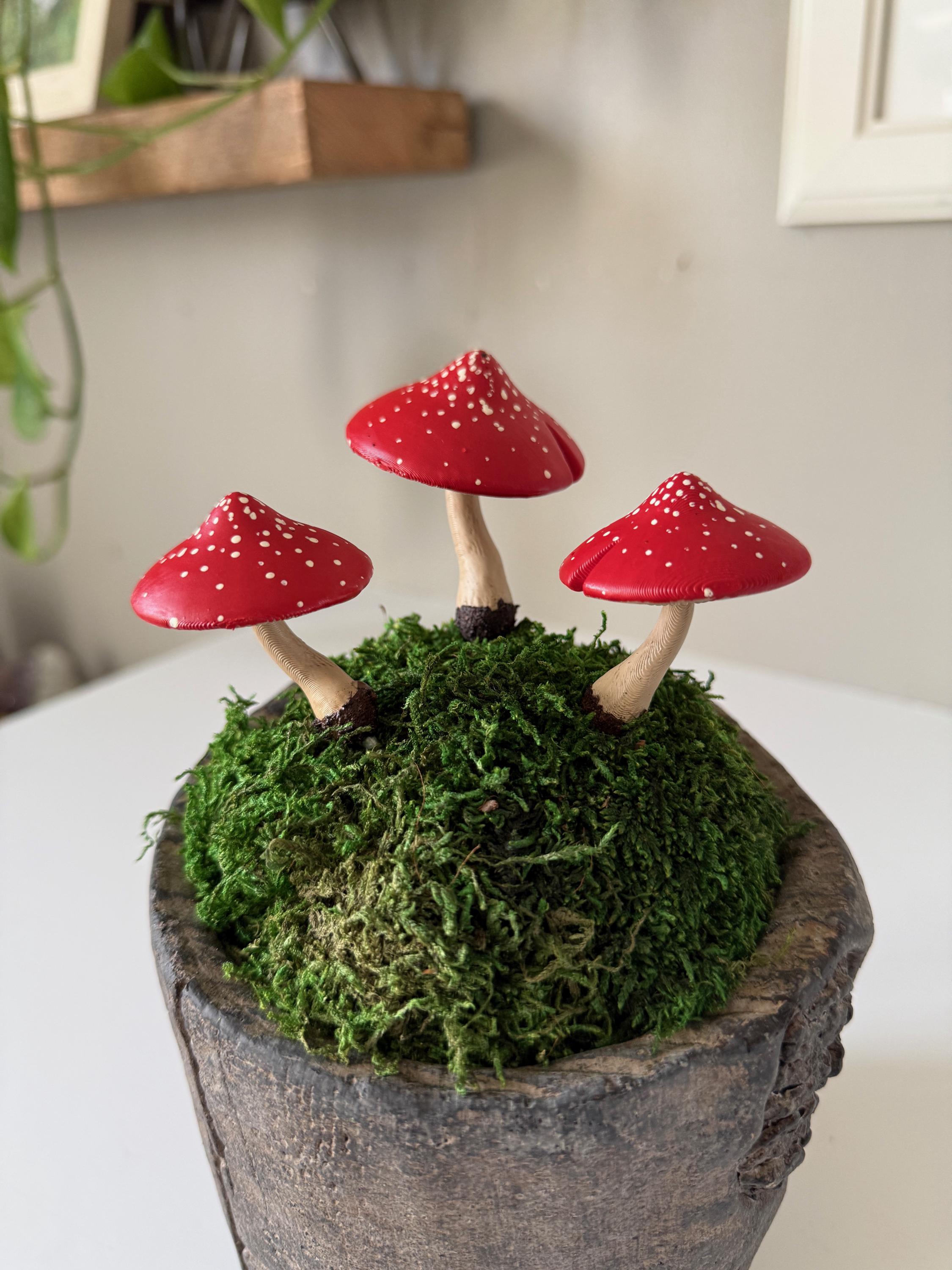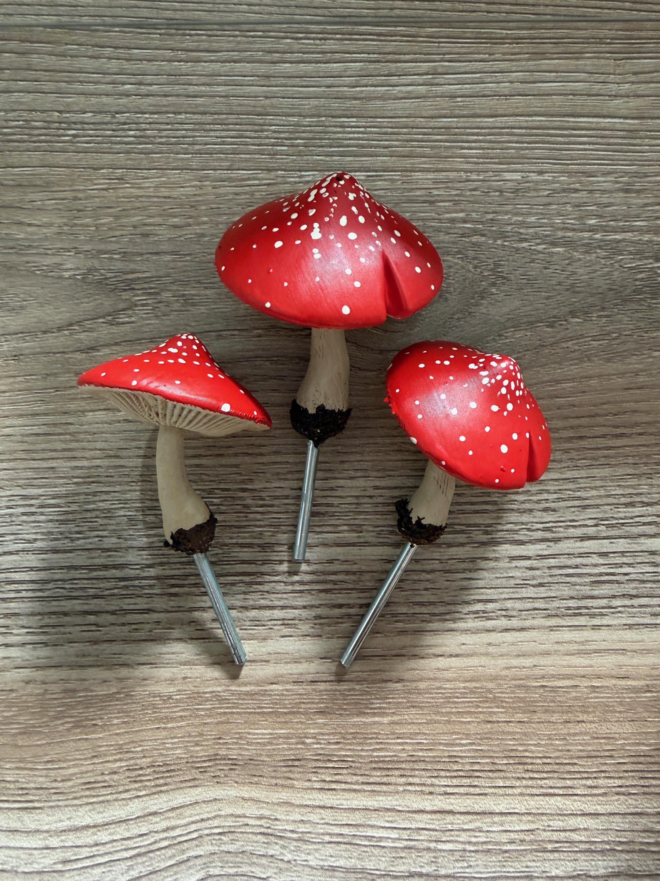 One set of 3 hand-painted mushrooms to use for decor, crafts, terrariums, gift toppers, cake toppers and more!