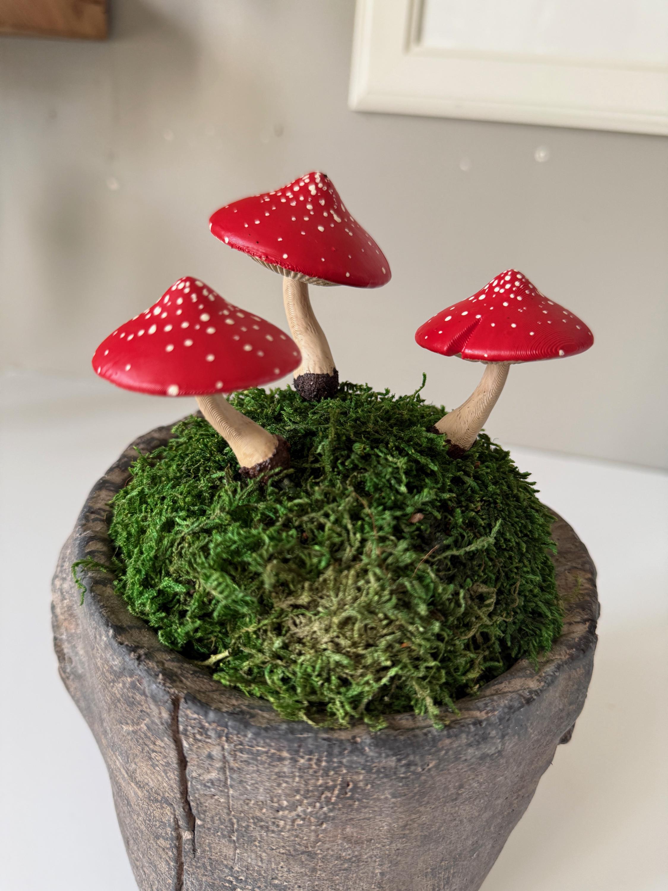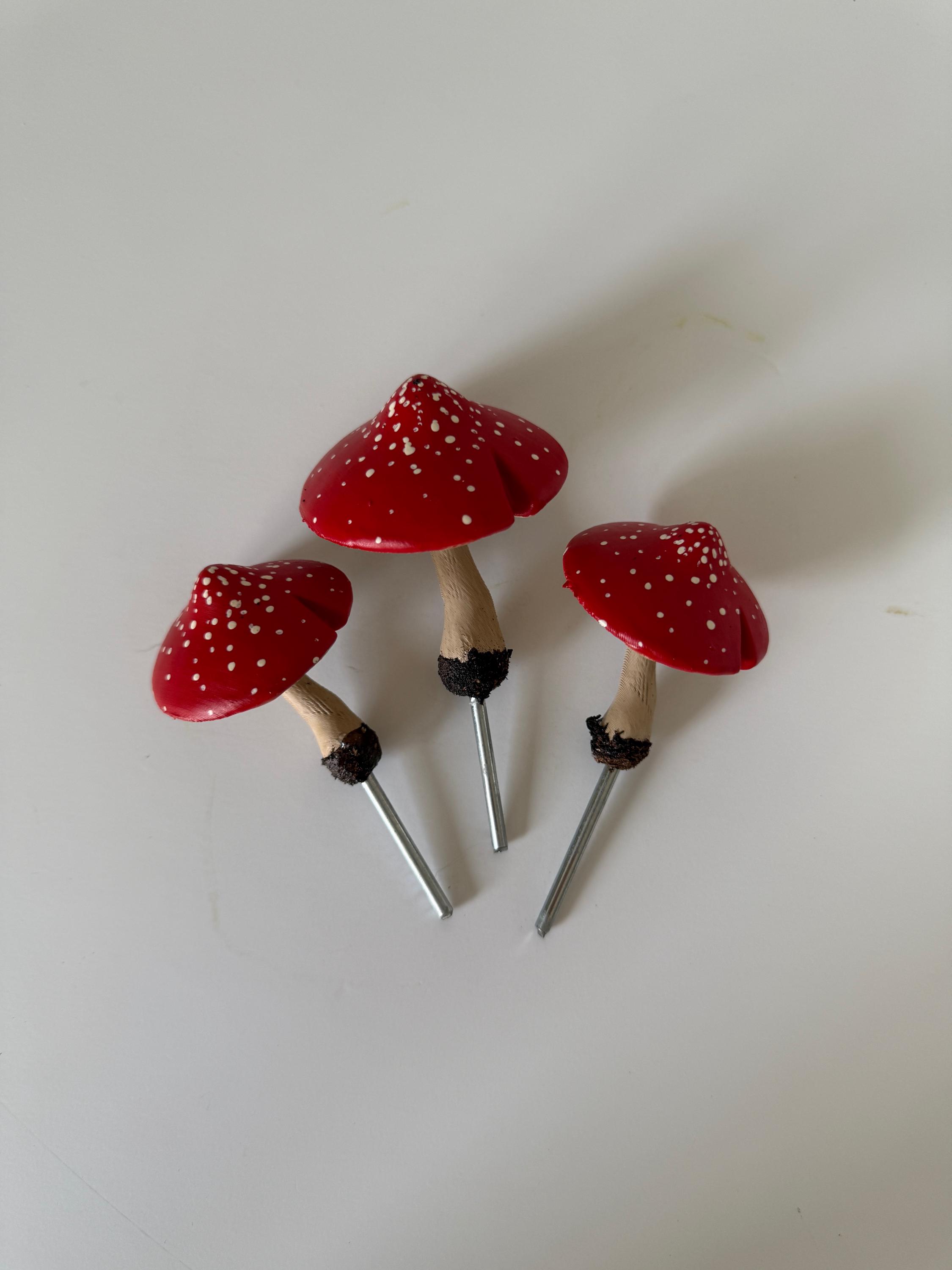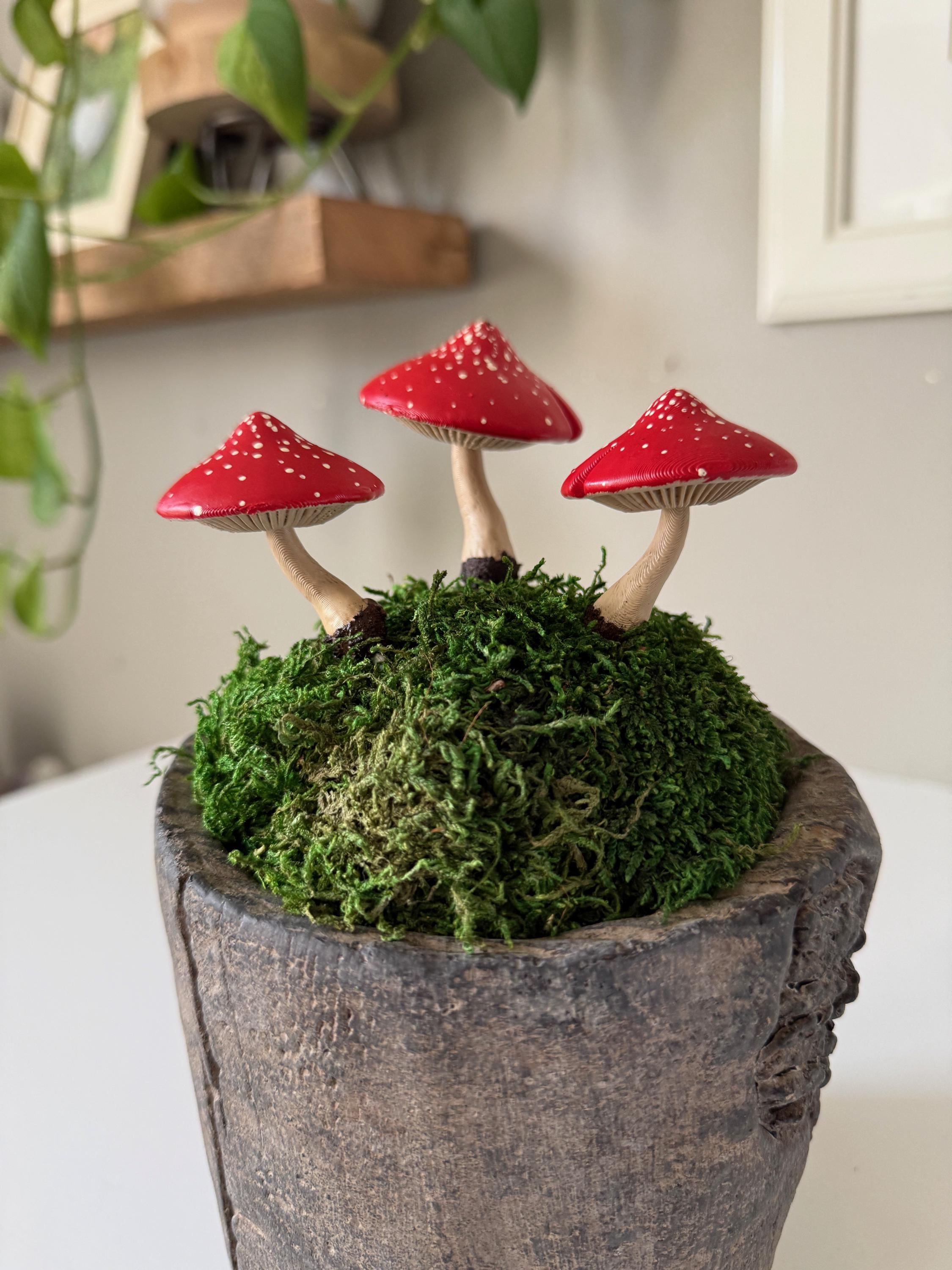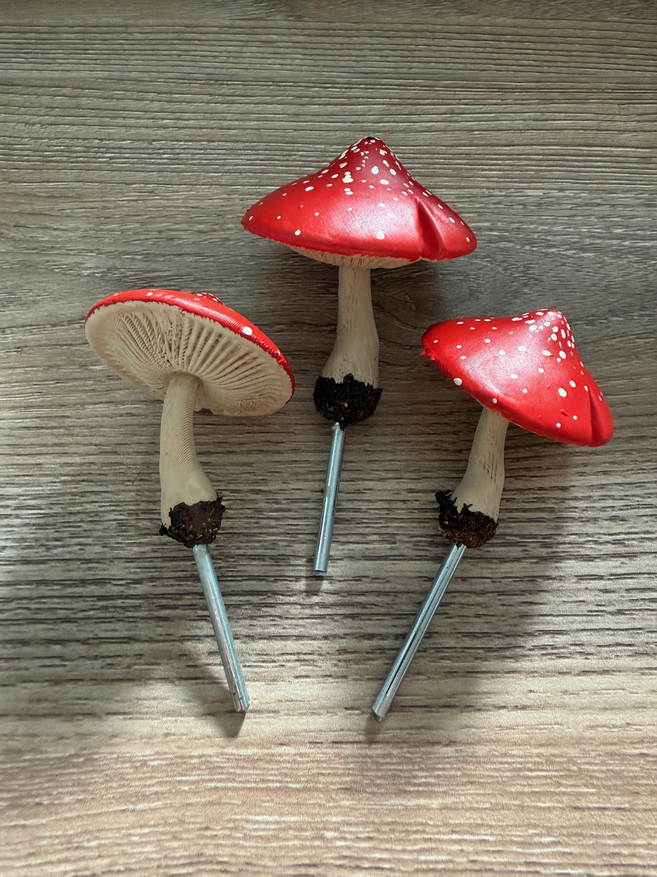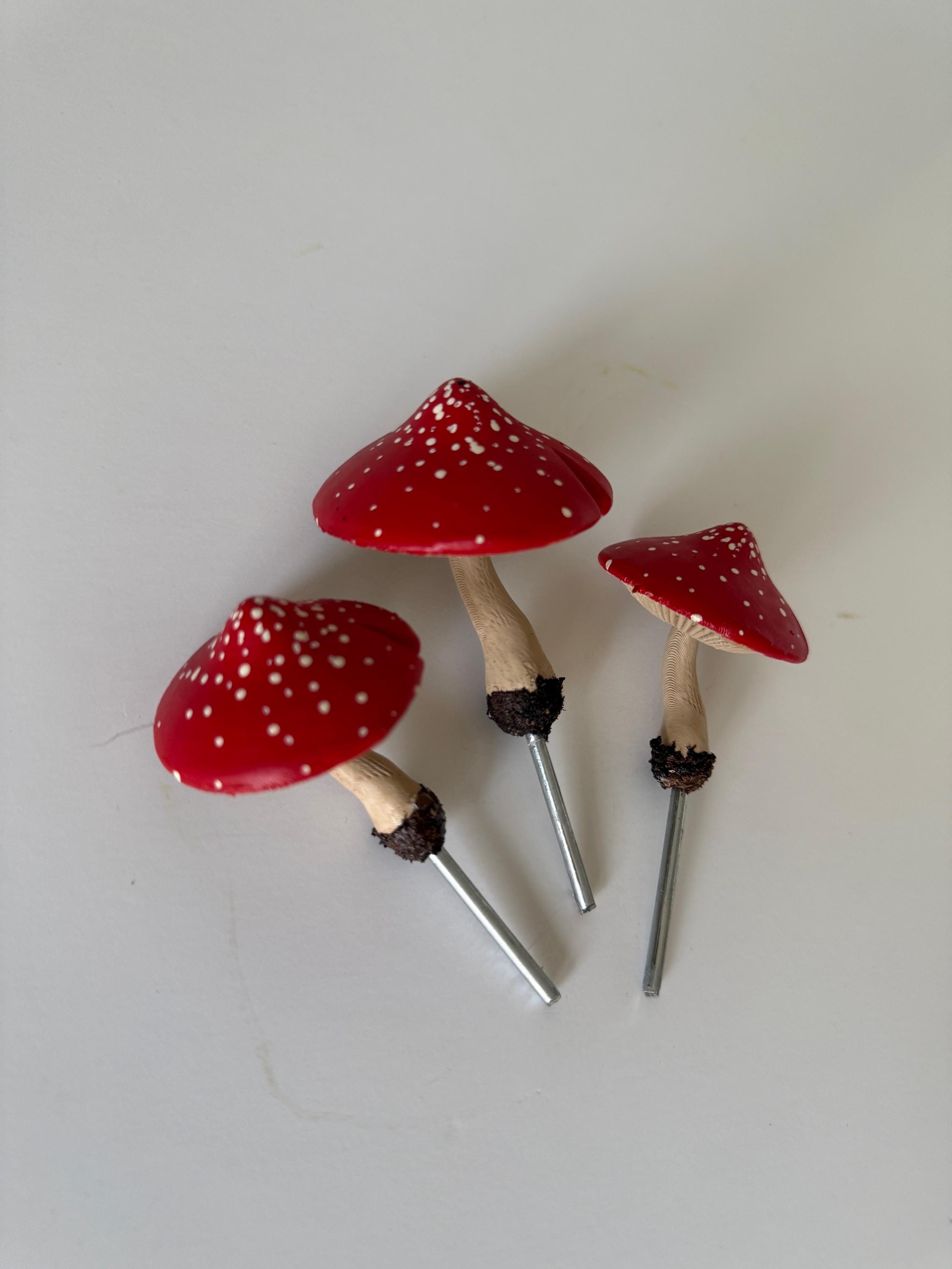 One set of 3 hand-painted mushrooms to use for decor, crafts, terrariums, gift toppers, cake toppers and more!