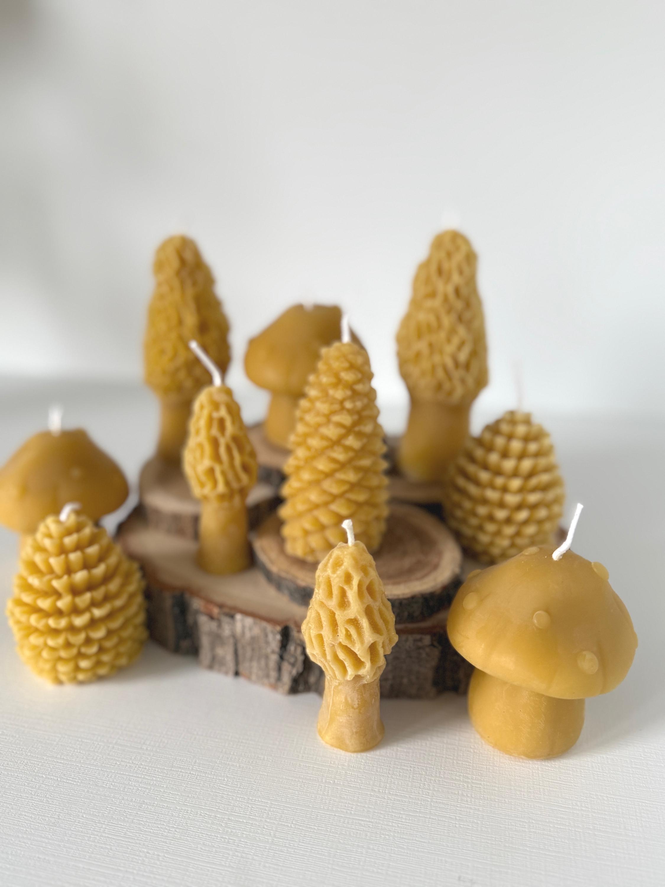 Looking for natural beeswax candles, without fragrances, dyes, phthalates and other harmful ingredients? These cute little morel mushroom candles are perfection.