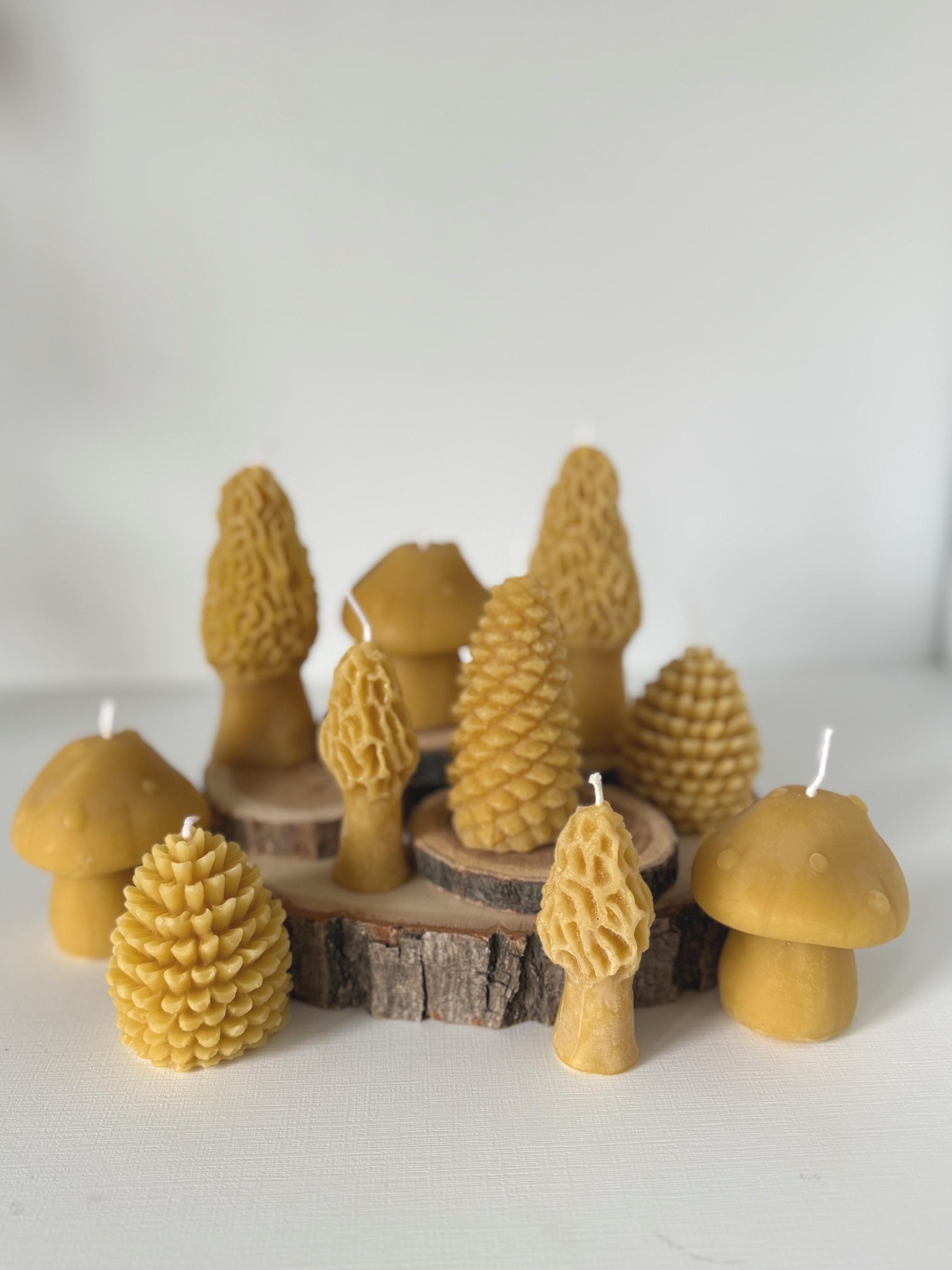 Looking for natural beeswax candles, without fragrances, dyes, phthalates and other harmful ingredients? These cute little morel mushroom candles are perfection. Available in Spruce (taller) or Pine (shorter). Both burn for a long time!