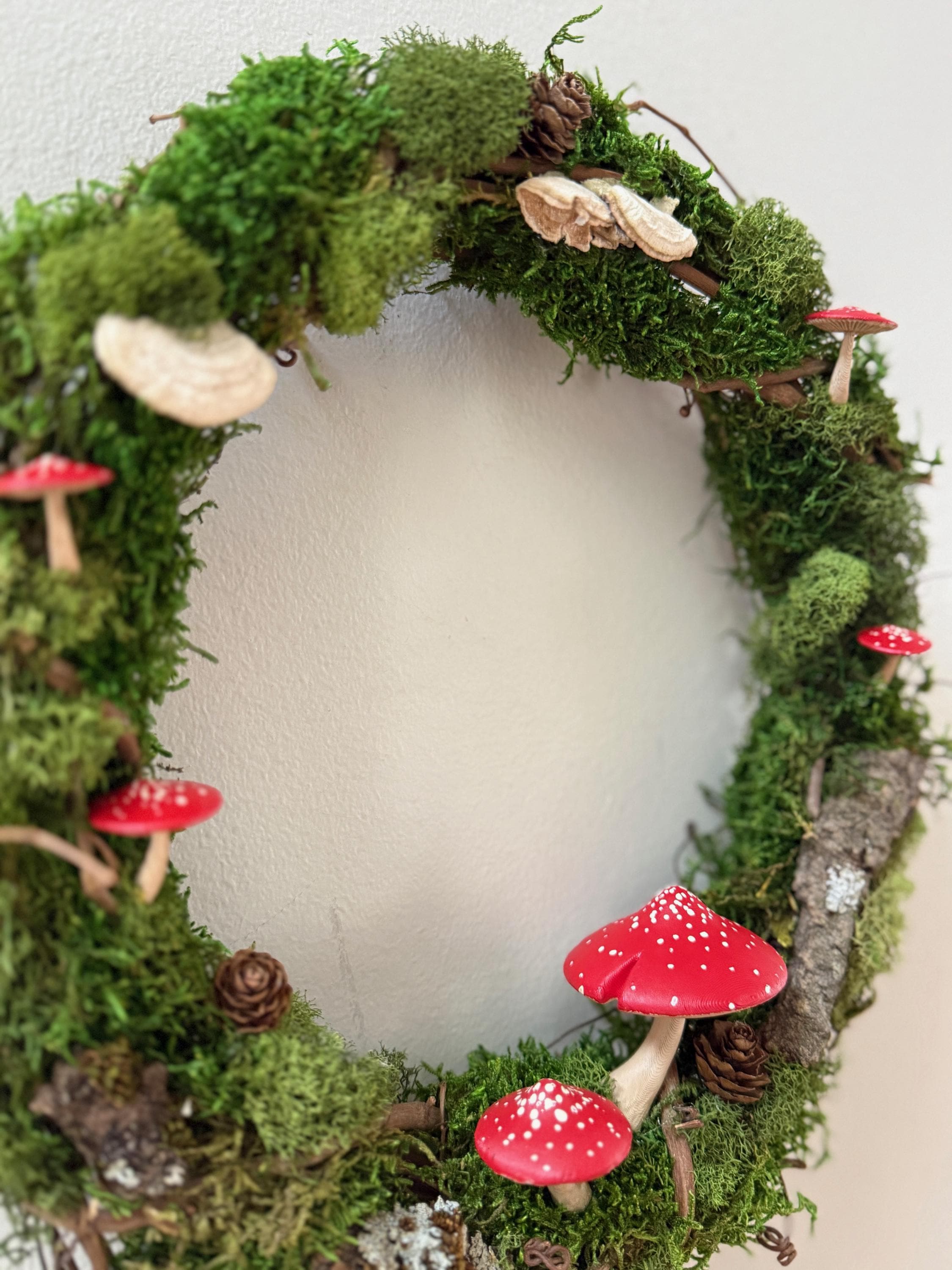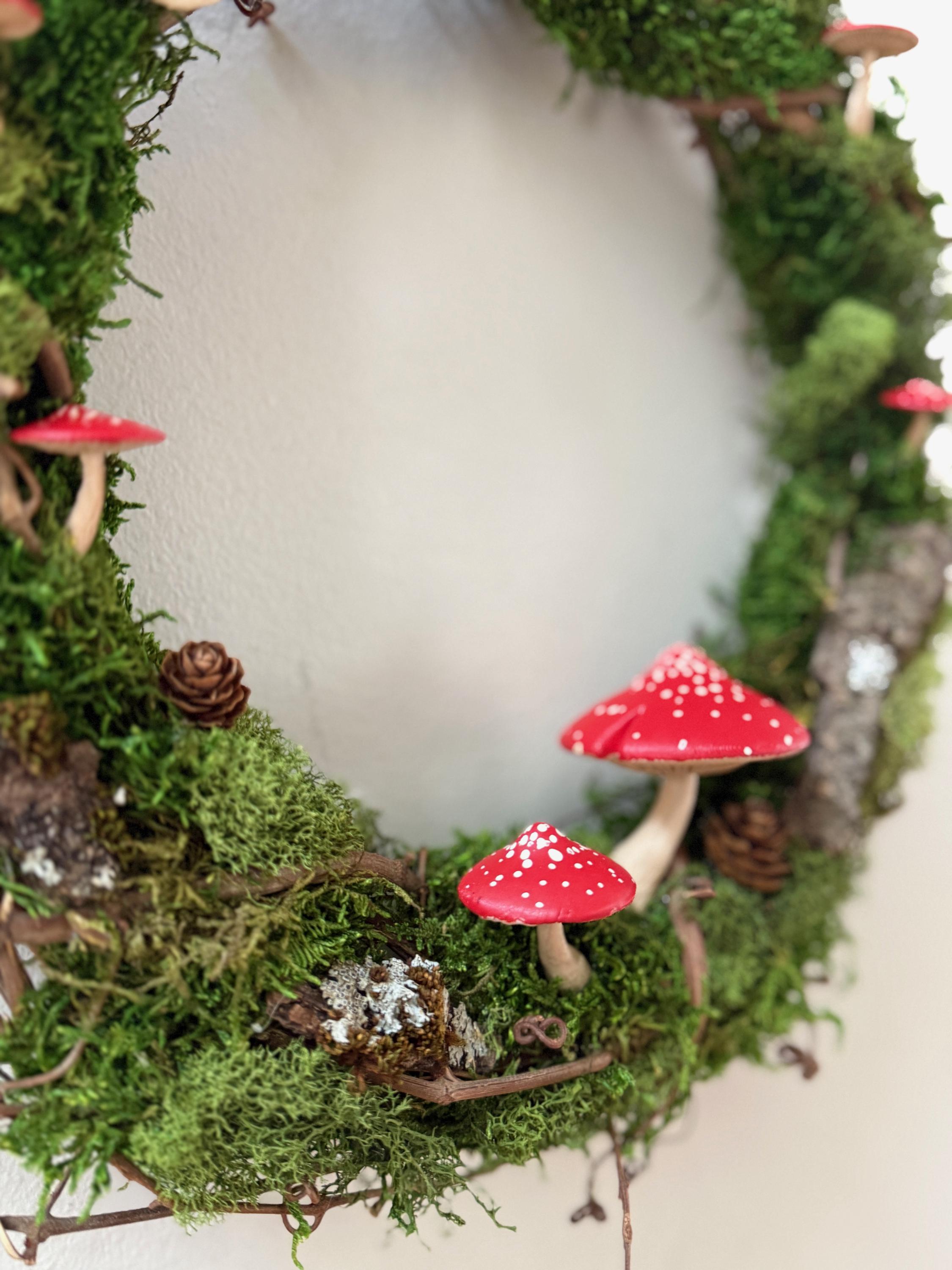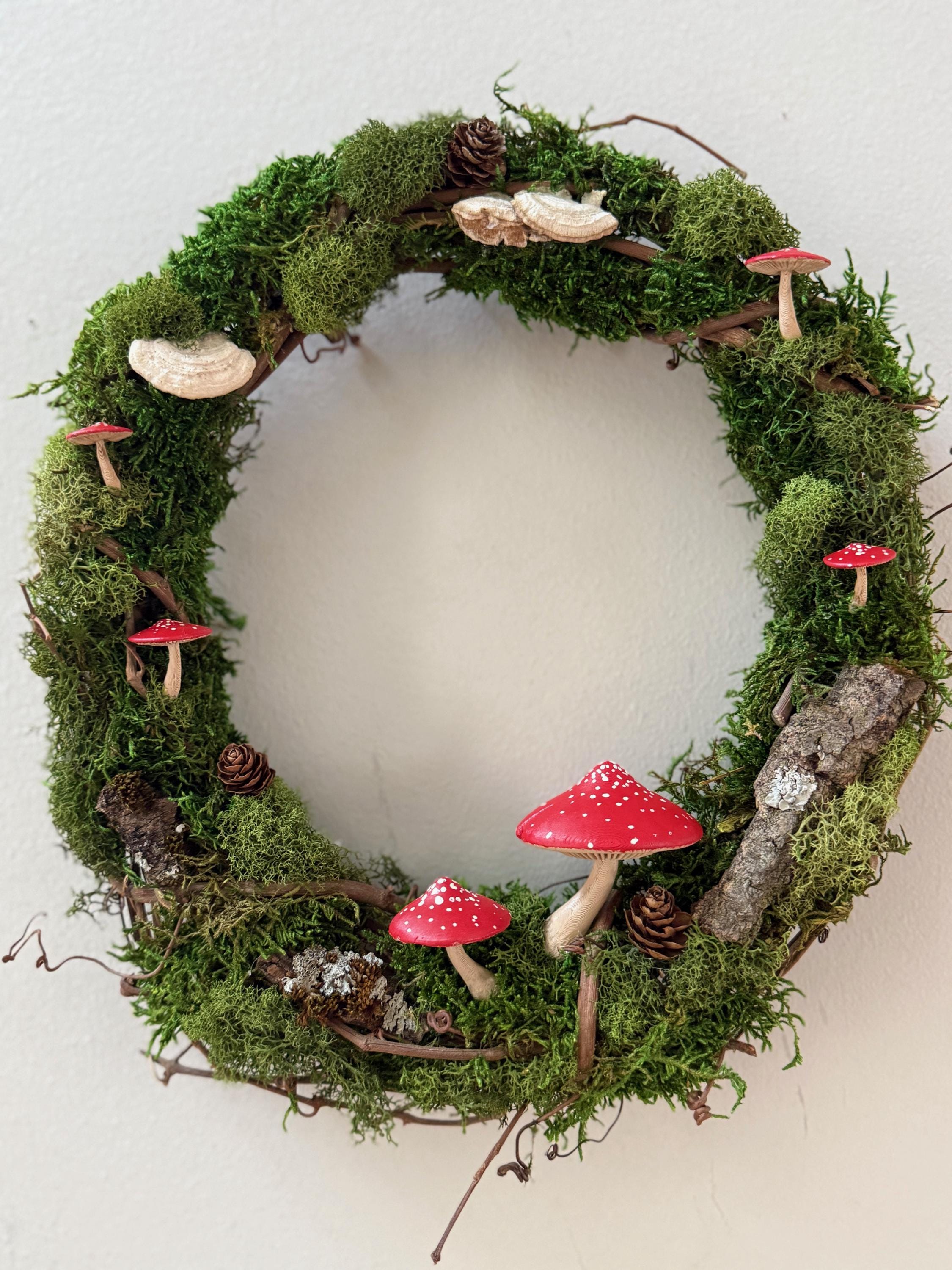 Add some natural elements and living art to your space! Almost like forest bathing on a small, indoor scale! Preserved mosses, lichen, dried mushrooms, and pinecones create a serene and sweet woodland scene.