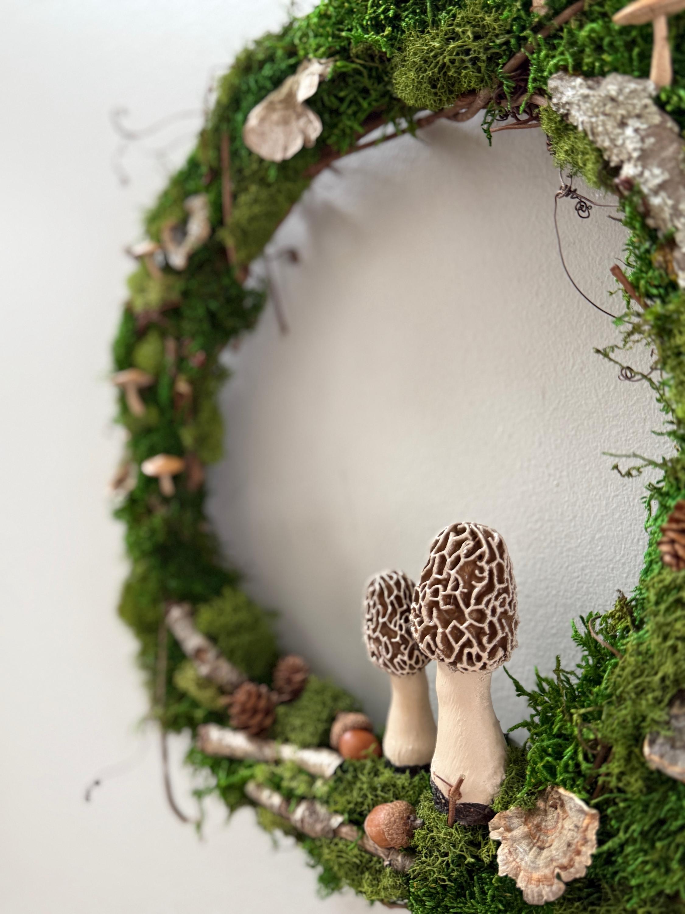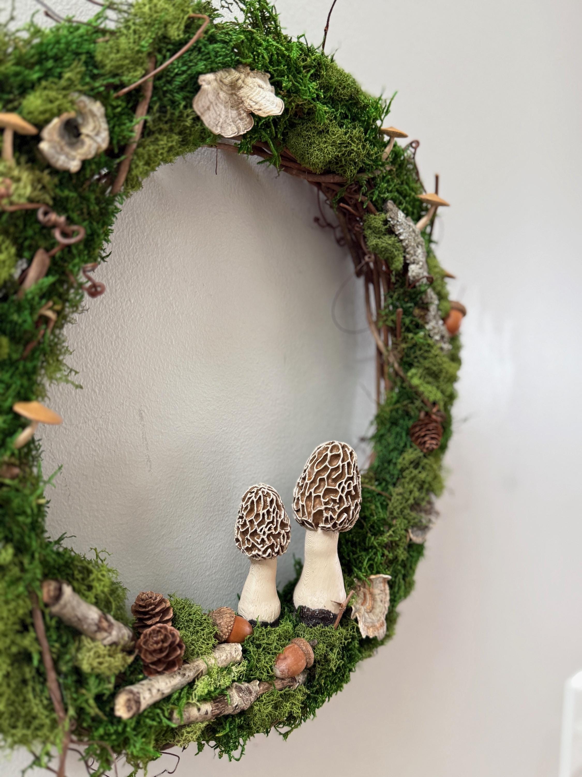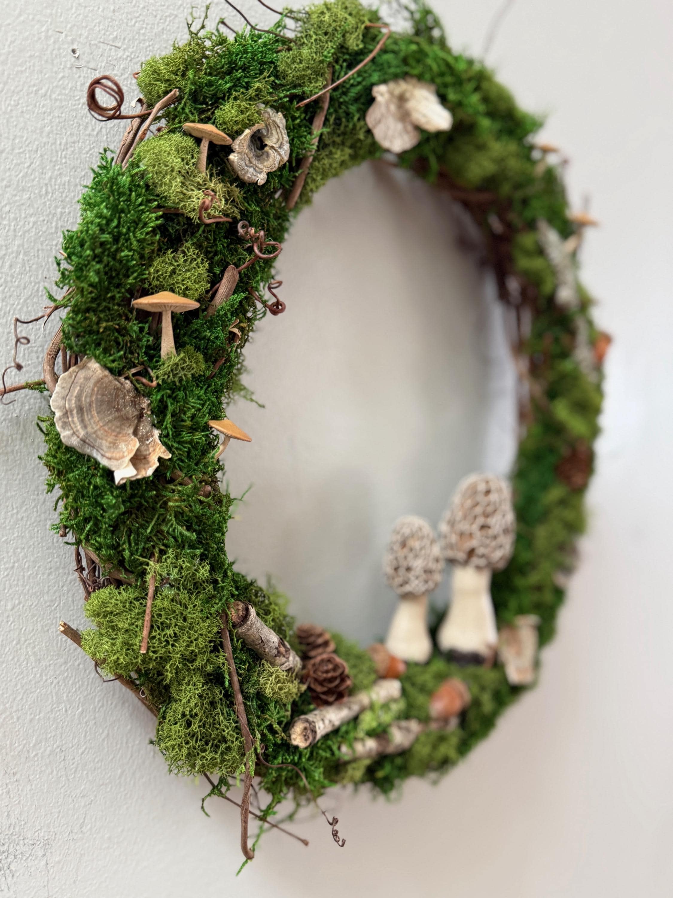This beautiful woodland wreath gives peace and serenity vibes to any space. Modern organic aesthetic. Immersion in nature has been proven to have calming effects on our nervous system and lower cortisol levels. Now you can "forest bathe" in your home, office, spa, anywhere!