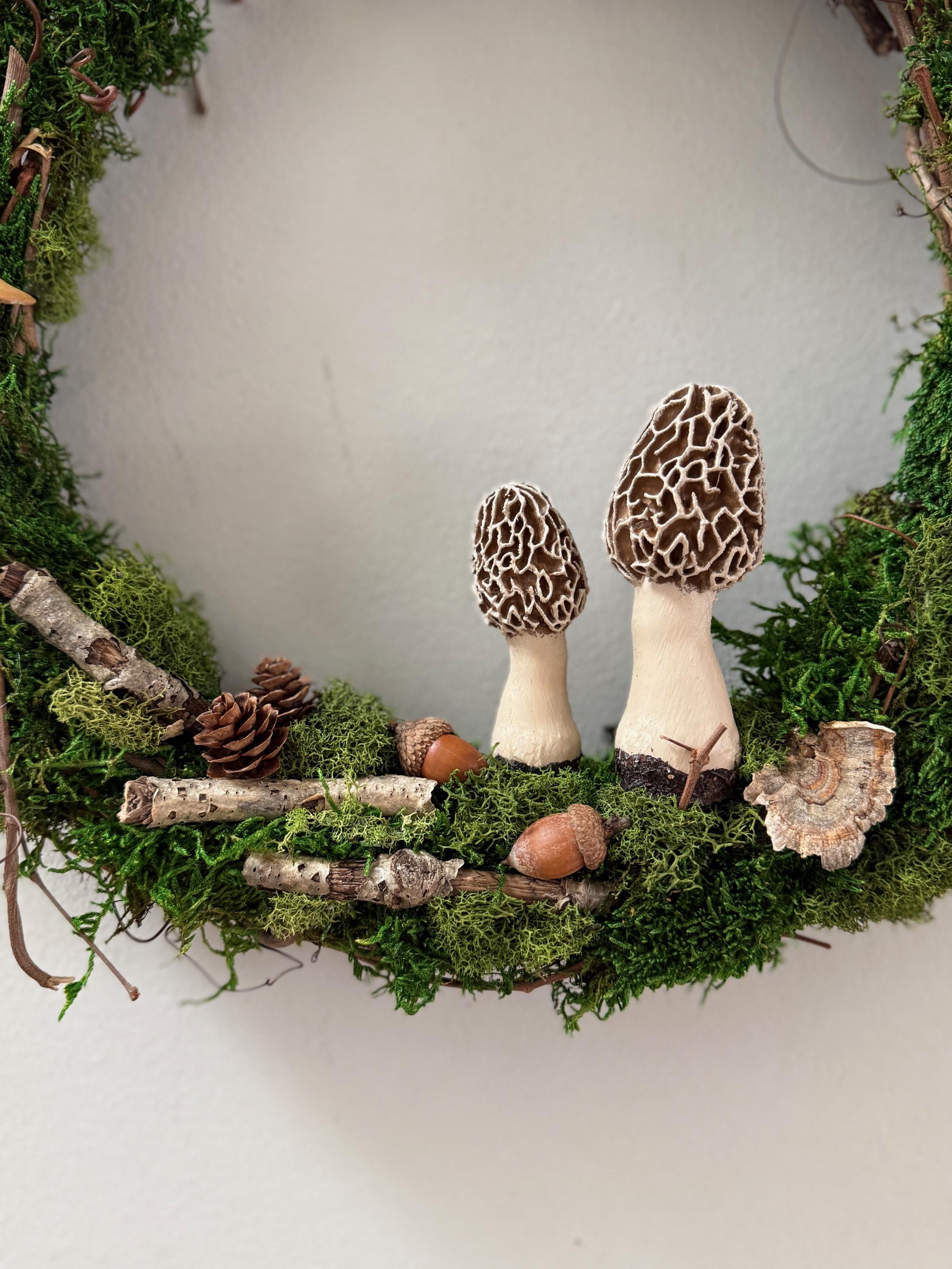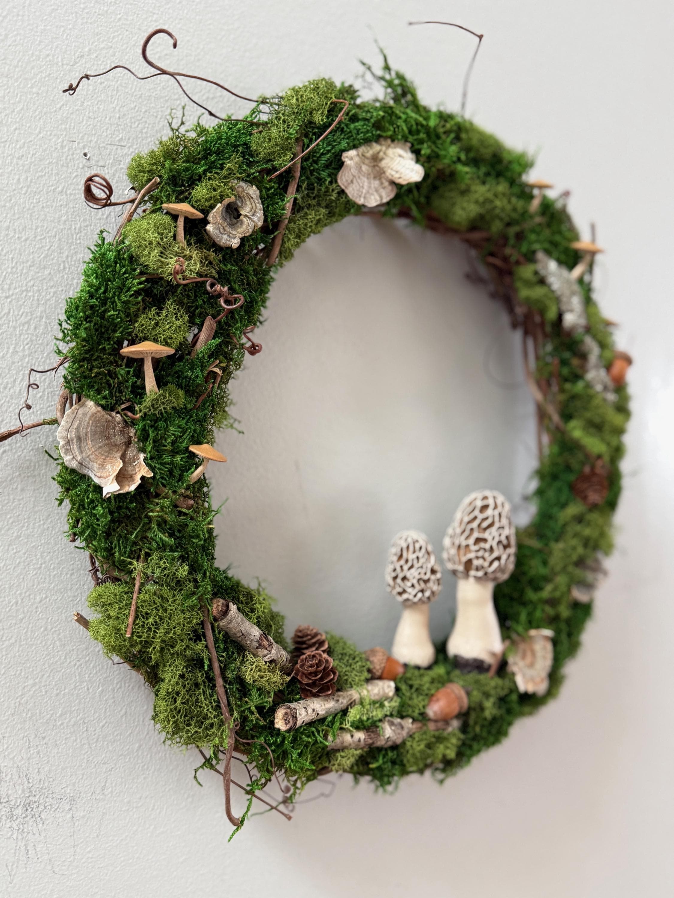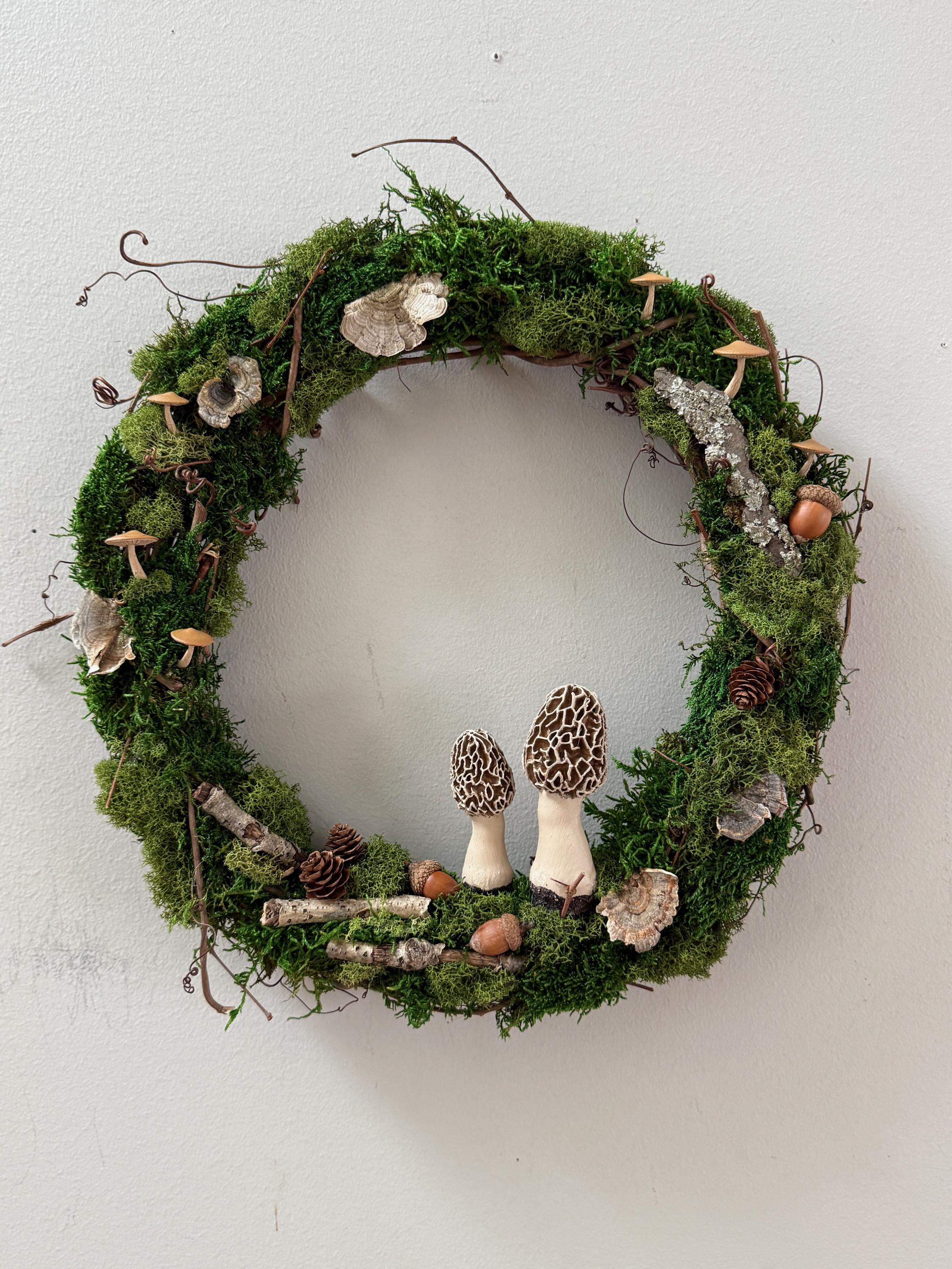 This beautiful woodland wreath gives peace and serenity vibes to any space. Modern organic aesthetic. Immersion in nature has been proven to have calming effects on our nervous system and lower cortisol levels. Now you can "forest bathe" in your home, office, spa, anywhere!