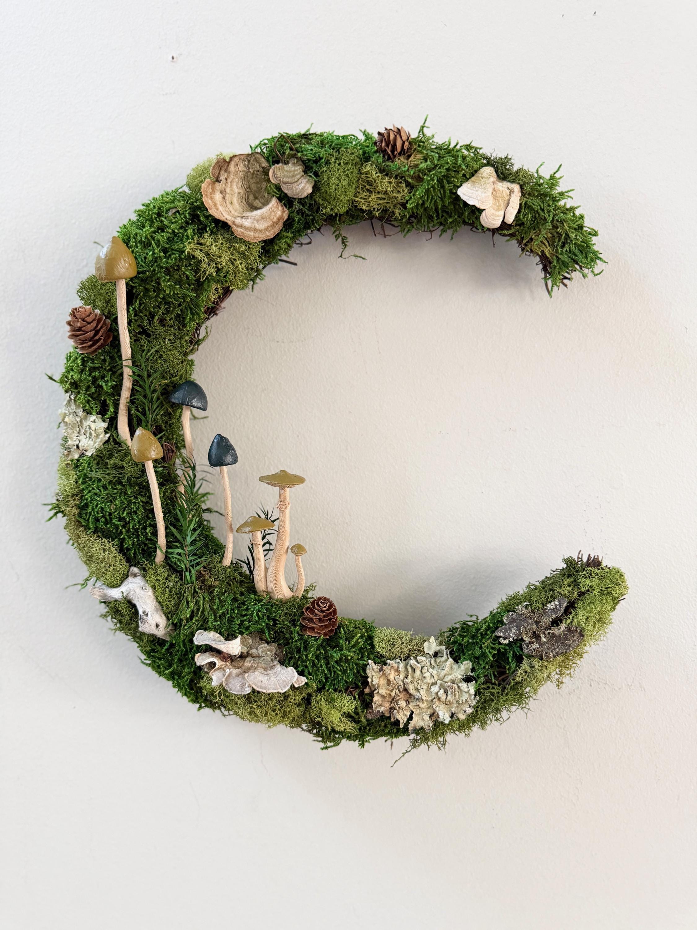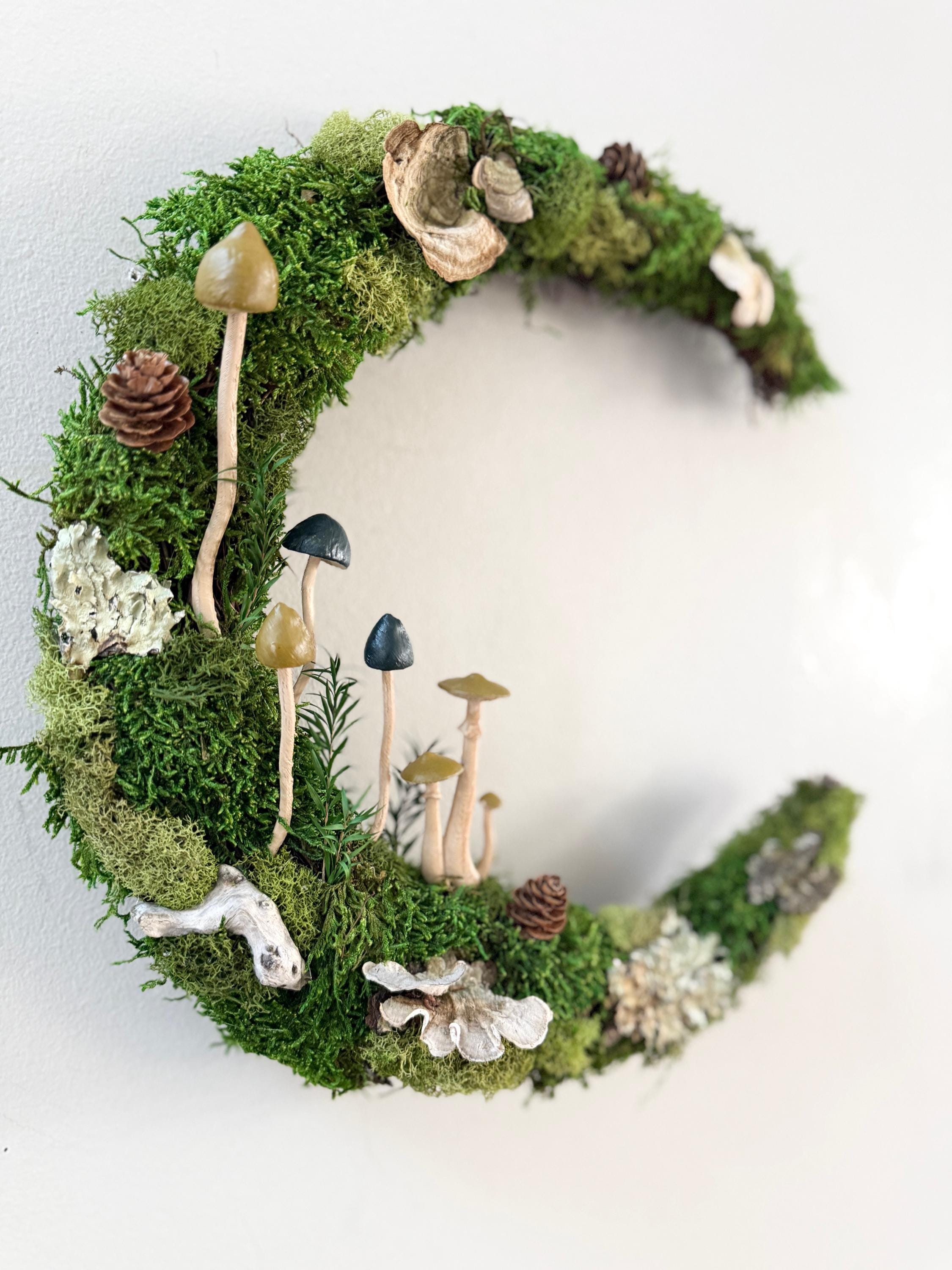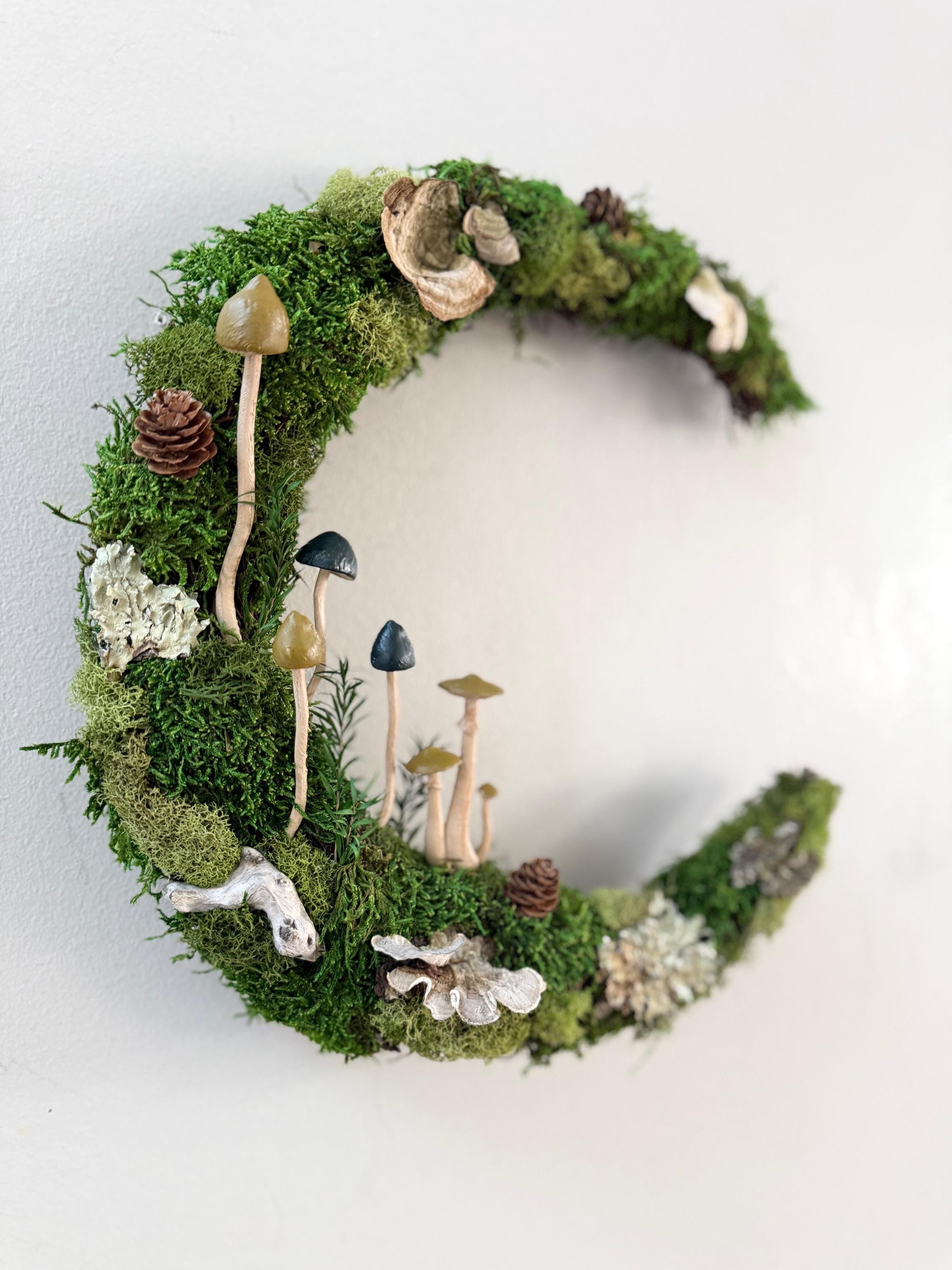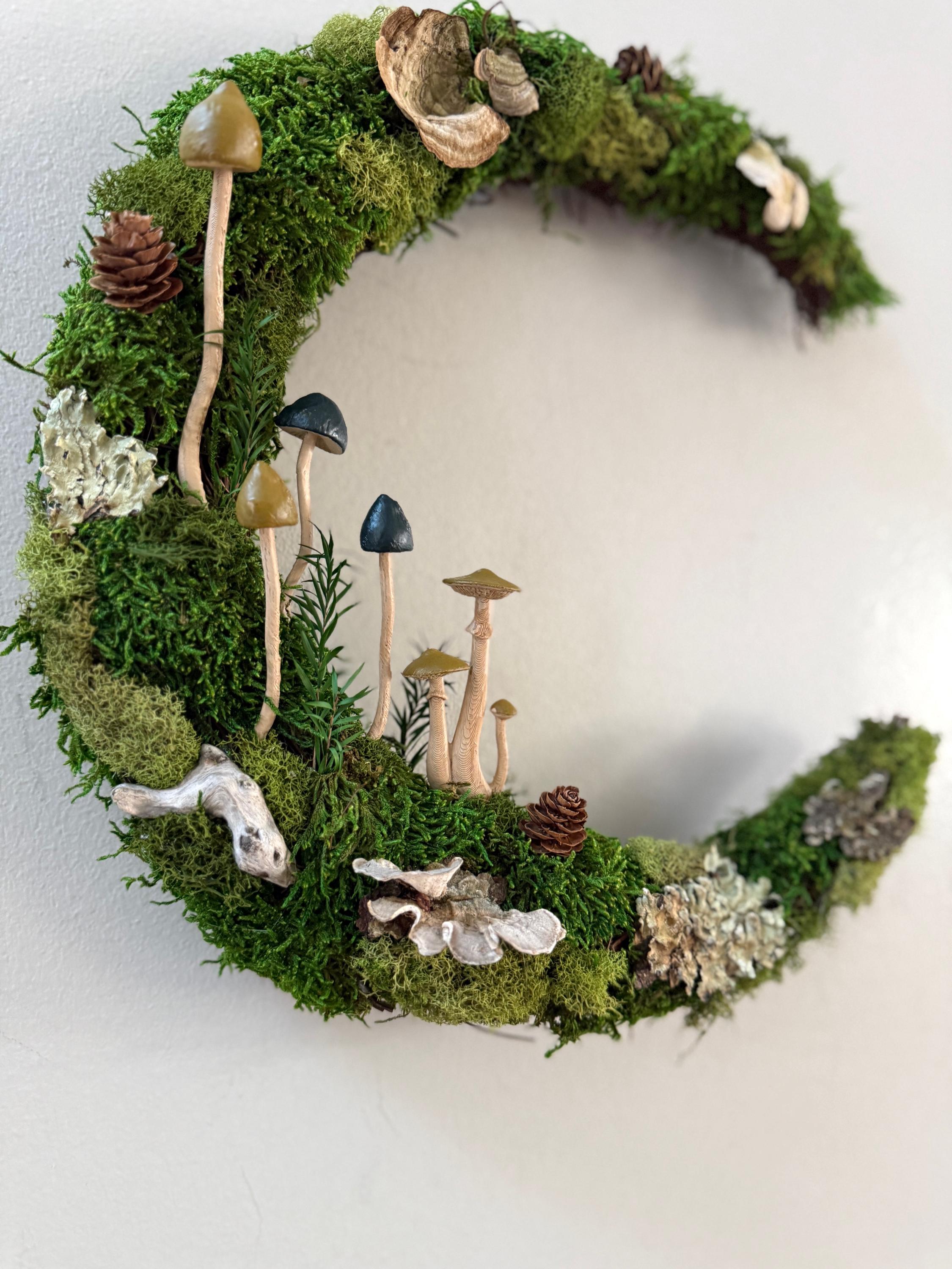 The mossy crescent moon, growing mushrooms and lichen. Mystical and magical.
