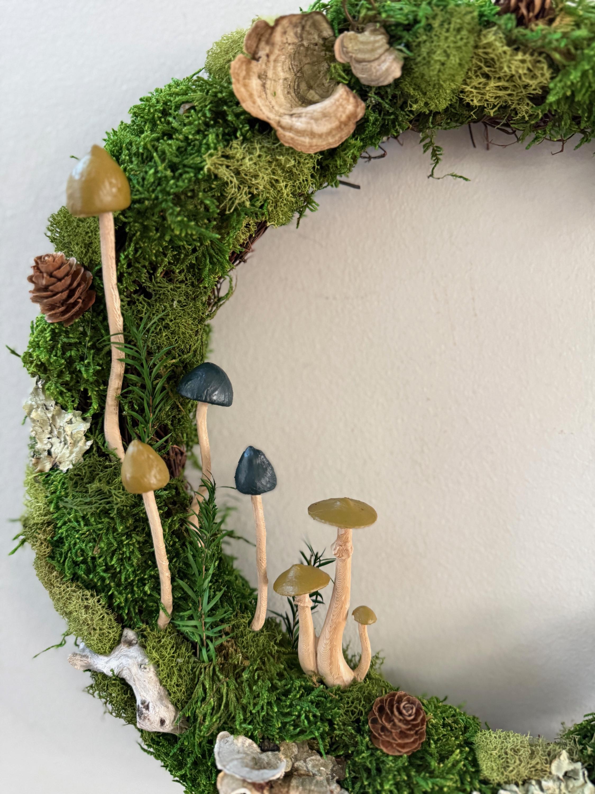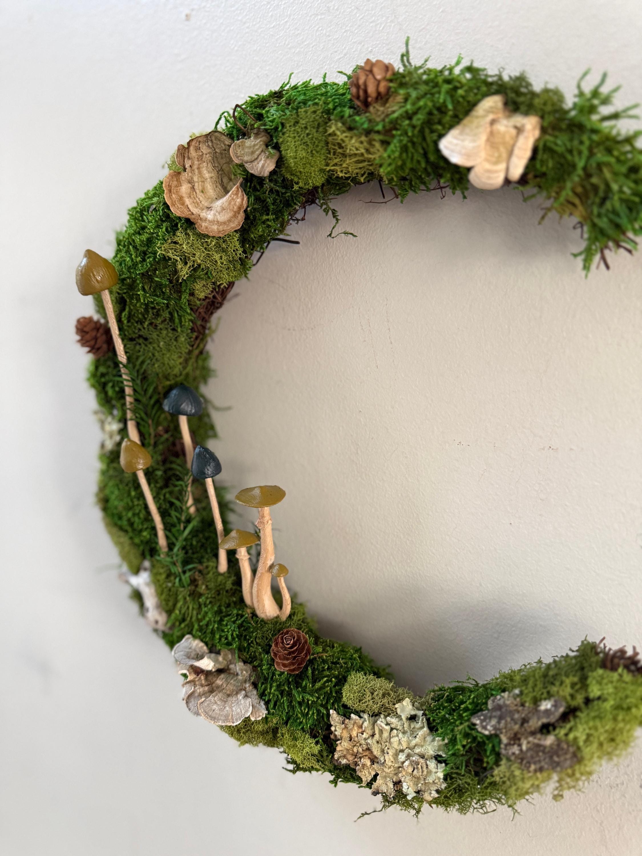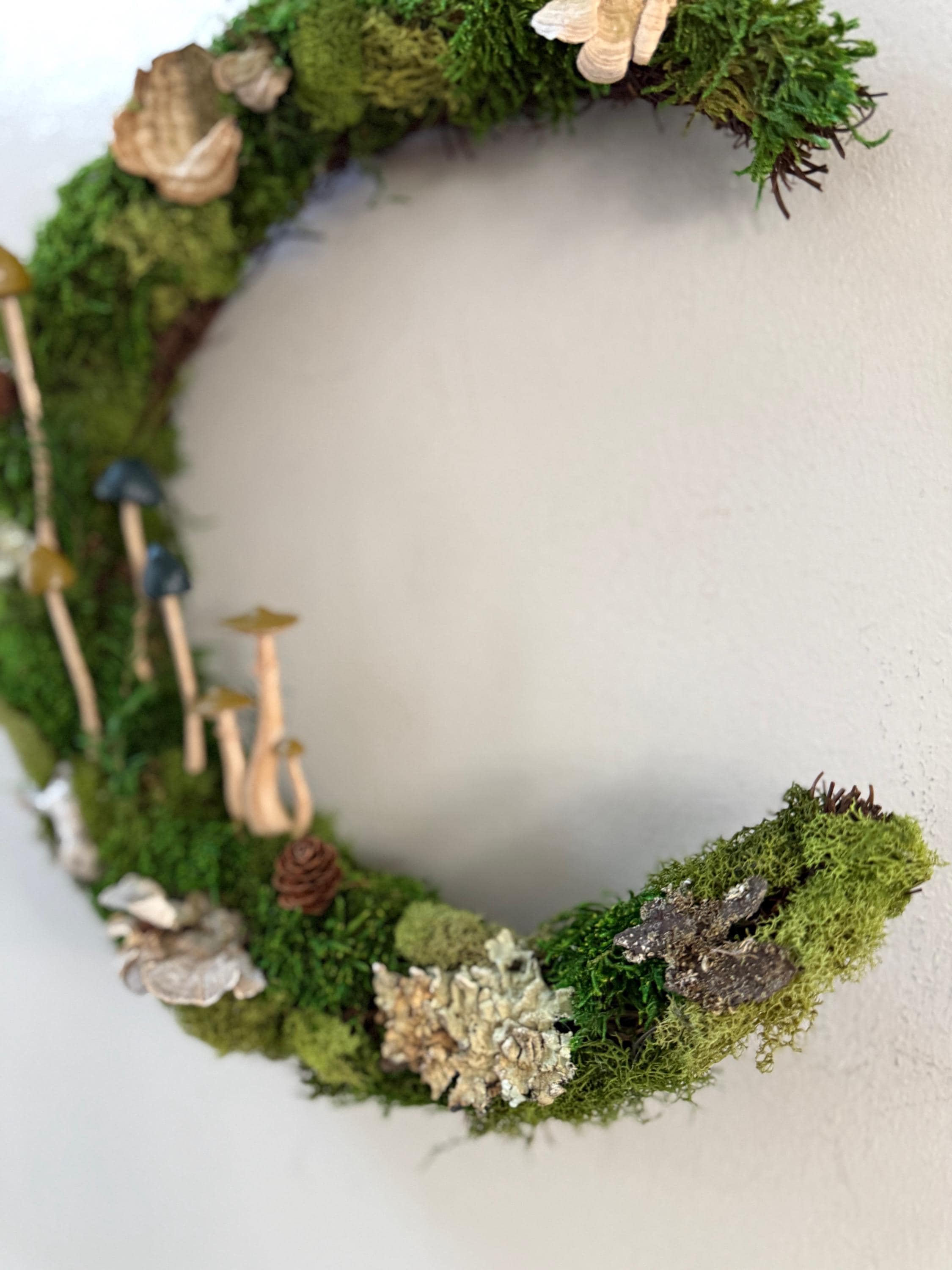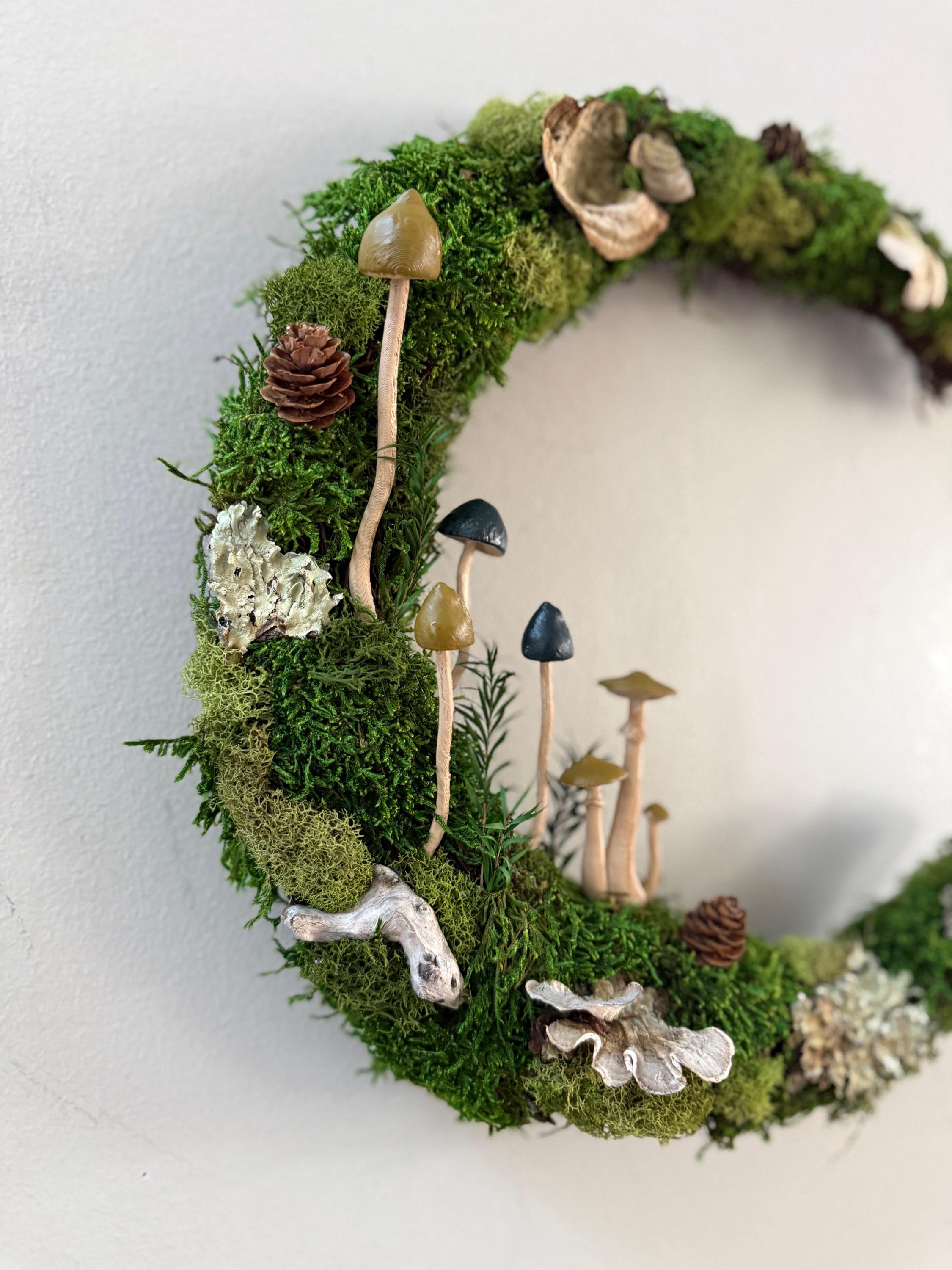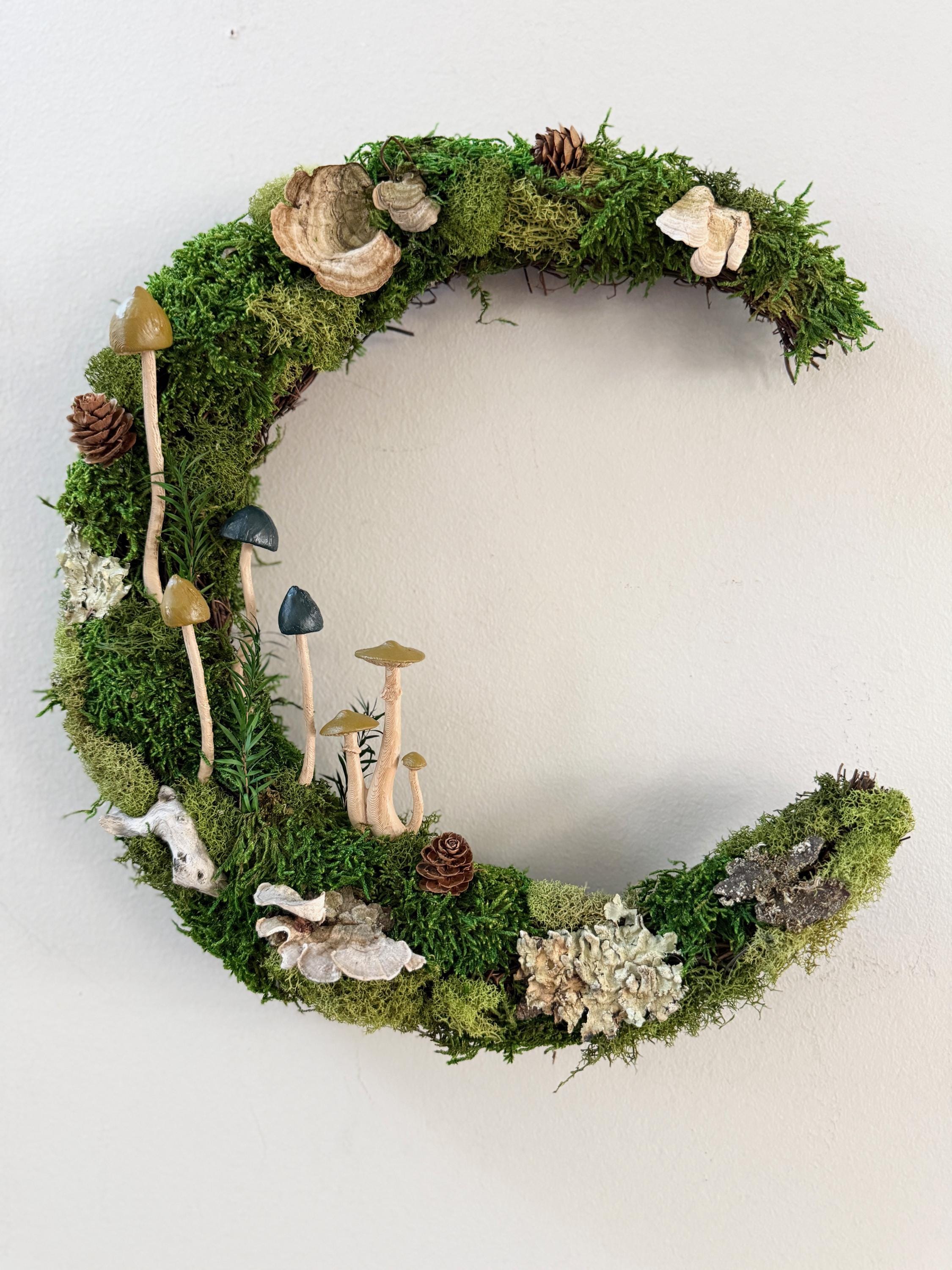 The mossy crescent moon, growing mushrooms and lichen. Mystical and magical.